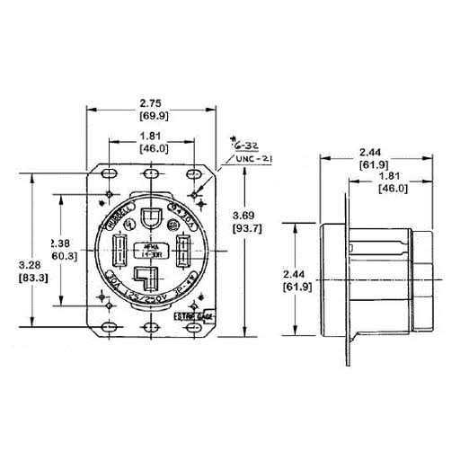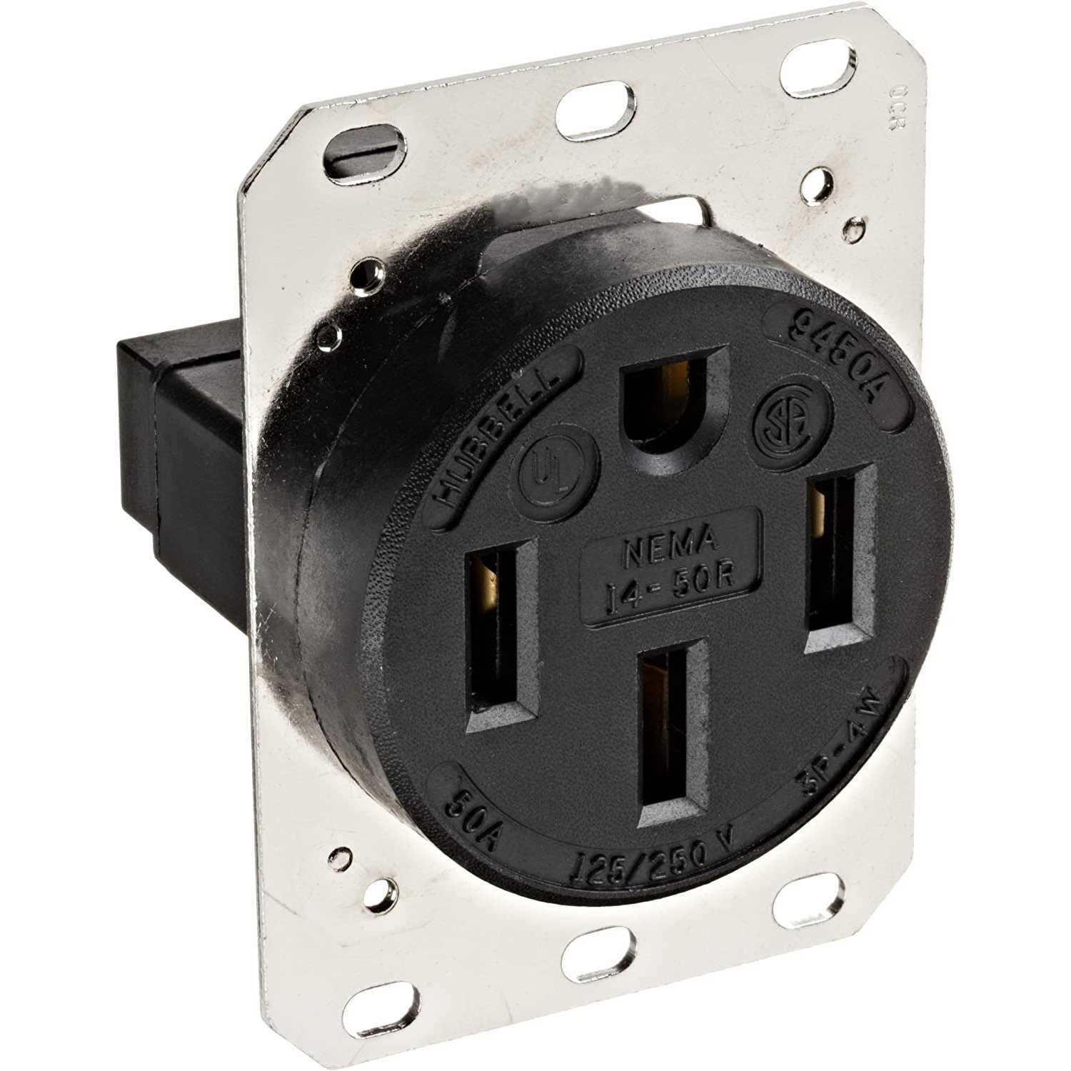 Hubbell HBL9450A ReceptacleHubbell’s Wiring Devices division offers a wide array of electrical and electronic wiring devices, wire management systems, occupancy sensors, lighting controls and specialized wiring products for the marine and healthcare markets.3P4W, 50A 125/250V, 15-50R, Black RTP.Hubbell HBL9450A Receptacle Features: Product Type: Flush-receptacles Receptacle Style: Single Face Shape: Standard Standard: NEMA Amperage: 50A Voltage: 125V/250V Poles and Wires: 3 Pole, 4 Wire Grounding Wiring Method: Back and Side Hospital Grade : No Receptacle Grade: Heavy Duty Spec Grade Face Style: Finder Groove NEMA No.: 14-50R Horsepower: 3(2) Description: Heavy Duty Straight Blade Single Receptacle Type: 3 Pole, 4 Wire, Grounding Rating: 50A, 125/250V Certification: UL, CSA, Fed Spec Terminal Screw Material: 3/8″ Allen Head, Plated Steel Ground Screw Material: 3/8″ Allen Head, Plated Steel Top Material: Glass Reinforced PET Base Material: Glass Reinforced PET Power Contacts Material: .040″ (1.0) Brass Mounting Strap Material: .062″ (1.5) Plated Steel Mounting Screw Material: Steel-Zinc Plated Box Terminals Material: Copper Dielectric Voltage: Withstands 2,000V minimum. Current Interrupting: Certified for current interrupting at full rated current. Temperature Rise: Max 30 DegreesC temperature rise at full rated current after 50 cycles of overload at 150% of rated current at a power factor of 75%.. Terminal Identification: Terminals identified in accordance with UL498 (Brass, White, Green). Terminal Accommodation: #12-#6 AWG copper stranded or solid conductor only. Product Identification: Ratings are a permanent part of the device. Flammability: UL 94 V0. Operating Temperatures: Maximum continuous 75 DegreesC, minimum-40 DegreesC (w/o impact).
