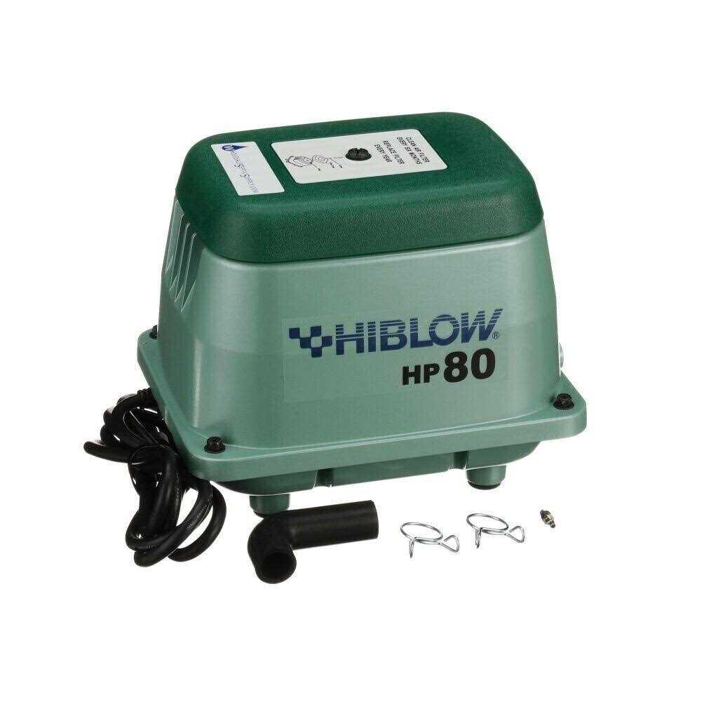 The Hiblow HP-80 air pump is whisper quiet energy efficient and the longest lasting linear diaphragm pump on the market. The HP-80 provides aeration for septic aerobic treatment units (ATU’s) koi ponds small garden/ residential ponds aquaculture systems hydroponics systems and aquaponics systems. The Hiblow HP-80 is a compatible replacement for the Gast SPP-80 Thomas 5078S Medo LA-80 Secoh EL-80-15 and other 80 LPM air pump units.