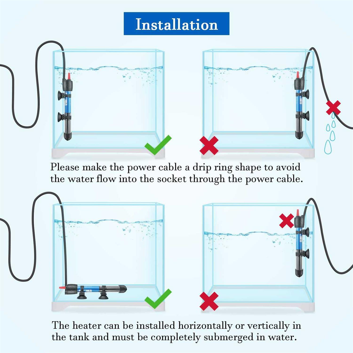 100W Aquarium Heater, 9.5 x 1 x 1 in, 1.5M/4.9ft cable This heater is simple and beautiful in appearance, placed in your aquarium, unobtrusive, and will not destroy the fish tank landscape. You and your fish will like it. And it will turn off automatically when reaches temperature you set, without overheating. Features: 1.’ Good in maintain temp.2.’ Both suitable for freshwater and saltwater.3.’ Complete accessories: An extra stick-on thermometer(just peel and stick) and 2 extra suction cups are provided for spare(total 3).4.’ Better construction: Adopt 8-slot multi-branched heating wire ceramic frame, better heat dissipation, 9.5 x 1 x 1 inch, saving more space for your fish. Cautions: 1.’ The heating part must be fully submerged in the water to avoid dry-burning, otherwise will cause damage to heater.2.’ Please clean the heater regularly to remove dirt from the heating tube and keep it in good working condition.3.’ It is forbidden to pull the heater adjustment knob outwards.4.’ If you need to change the water, please turn off the power, let the heater cool down for more than 20 minutes, wait for it to cool down completely before taking it out.