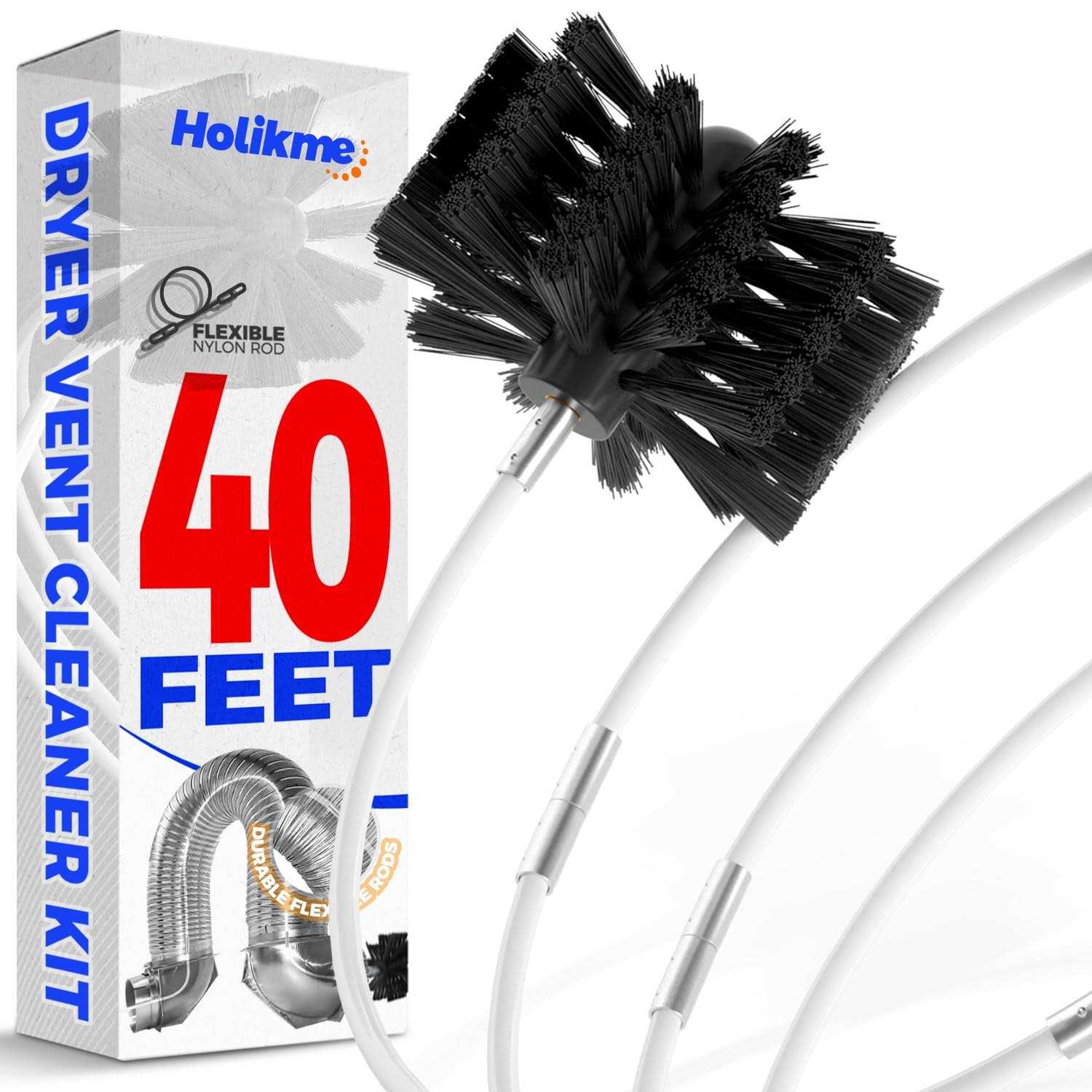 • Holikme 40 Feet Dryer Vent Cleaning Brush Kit, Lint Remover, Extends Up to 40 Feet, Synthetic Brush Head, Use with or Without a Power Drill.