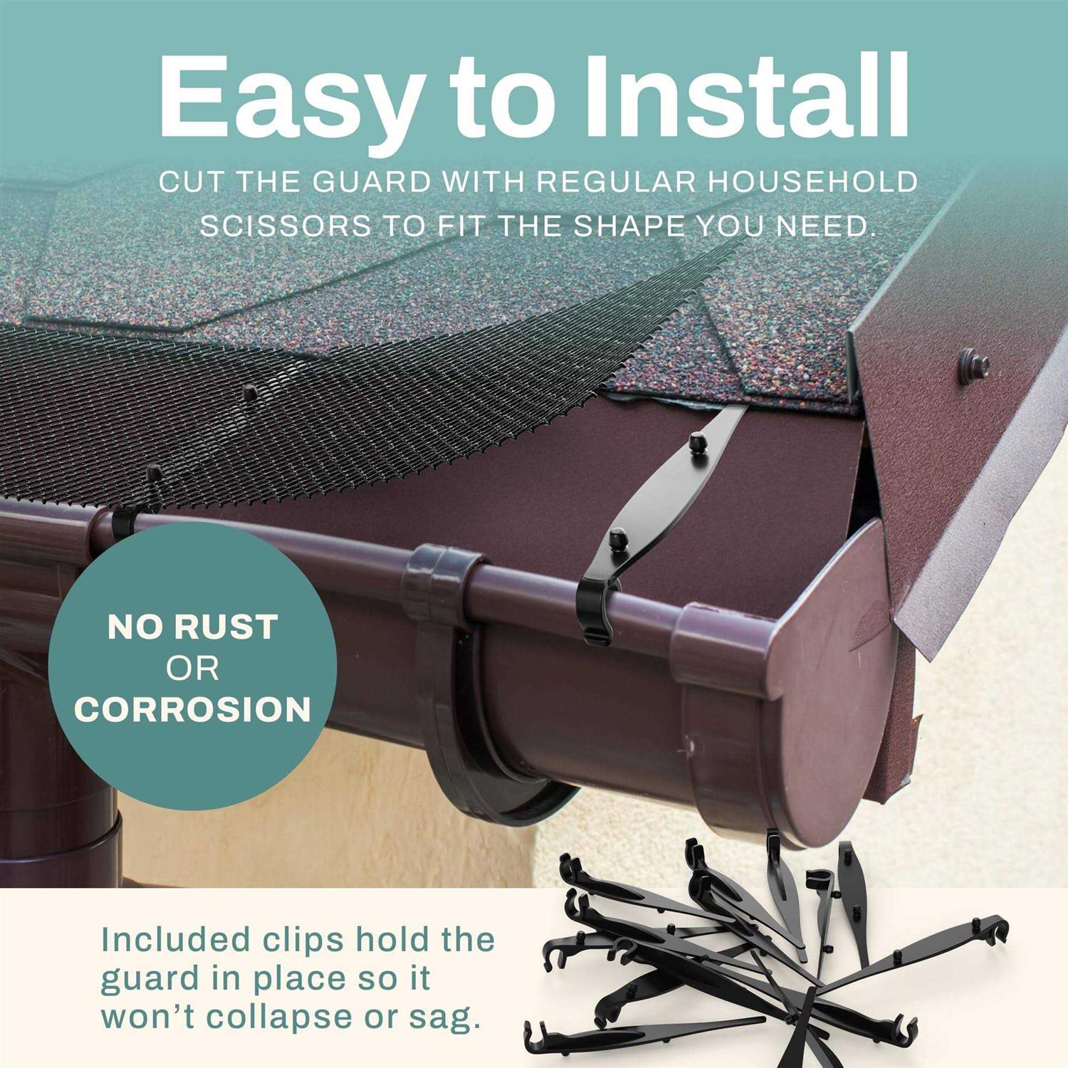- Keeps leaves and dirt out of gutters