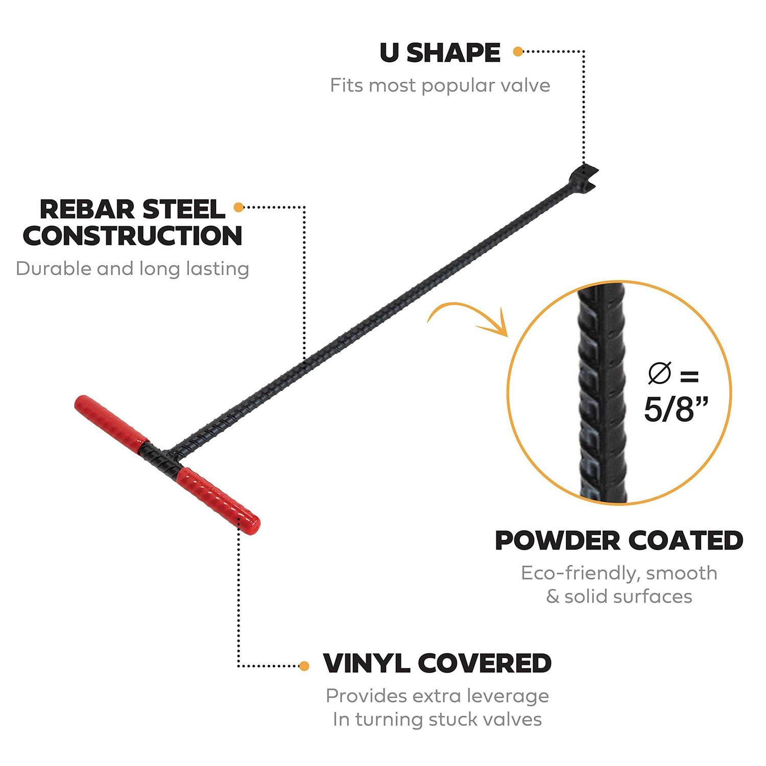 Homestead 60-Inch Water Meter Key with wide T handle, Comfortable Grip and U-shaped Head