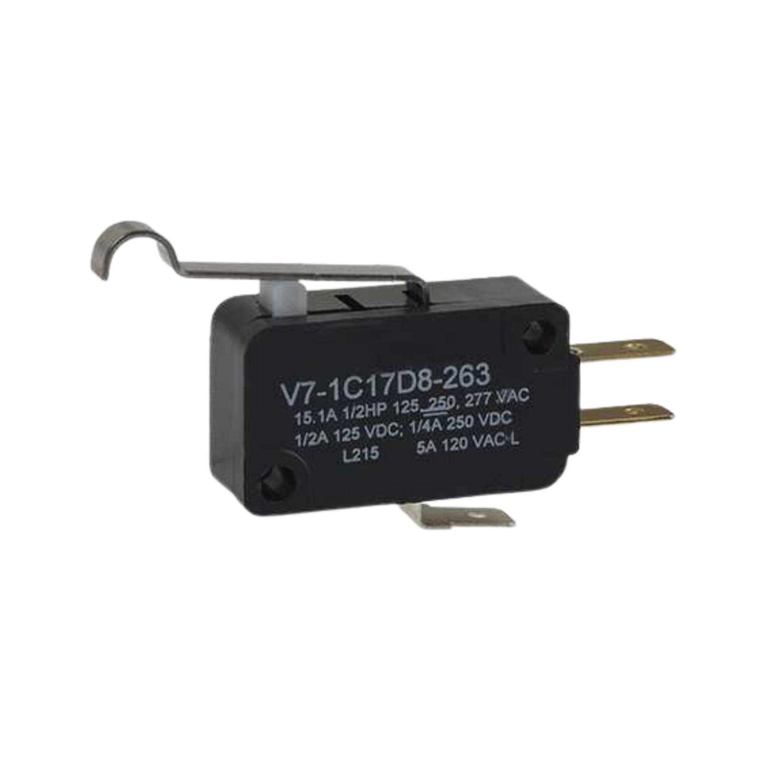 This Microswitch miniature switch features quick-connect terminals and a simulated roller lever actuator. It is designed to operate in temperatures ranging between -40 and 180 F. This listing is for each. Technical Specification Snap Action Switch Type Miniature Snap Action Switch Basic Actuator Type – Snap Action Switch Lever Actuator Type – Snap Action Switch Lever, Simulated Roller Item Miniature Snap Action Switch AC Contact Rating – Snap Action Switch 15A @ 240V DC Contact Rating – Snap Action Switch 0.5A @ 125V Contact Form- Switches SPDT Lever Actuator Length – Snap Action Switch 1.29 in Height – Snap Action Switch 0.63 in Width – Snap Action Switch 1.14 in Depth – Snap Action Switch 0.4 in Electrical Connection – Snap Action Switch 3/16 in Quick Connect Mounting Dimension – Snap Action Switch 0.87 in Centers Number of Circuits – Snap Action Switch 1 Watertight – Snap Action Switch No Series V7 Operating Force 3.2 oz Max. Pretravel 0.11 in Release Force 0.31 oz Differential Travel 0.024 in Over Travel 0.061 in Operating Temp. Range -40 Degrees to 180 Degrees F Housing Material PCT Polyester Thermoplastic Standards CSA, UL