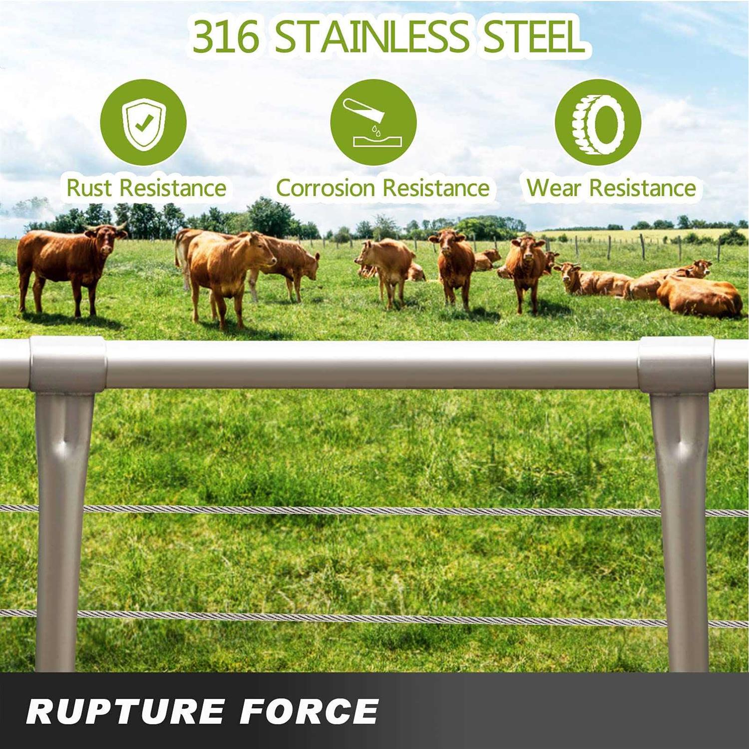 - [Wire Rope] – Wire rope with stainless steel grade 304 material and 3700lbs breaking strength. Come with 500Ft standard length and 3/16″ diameter.