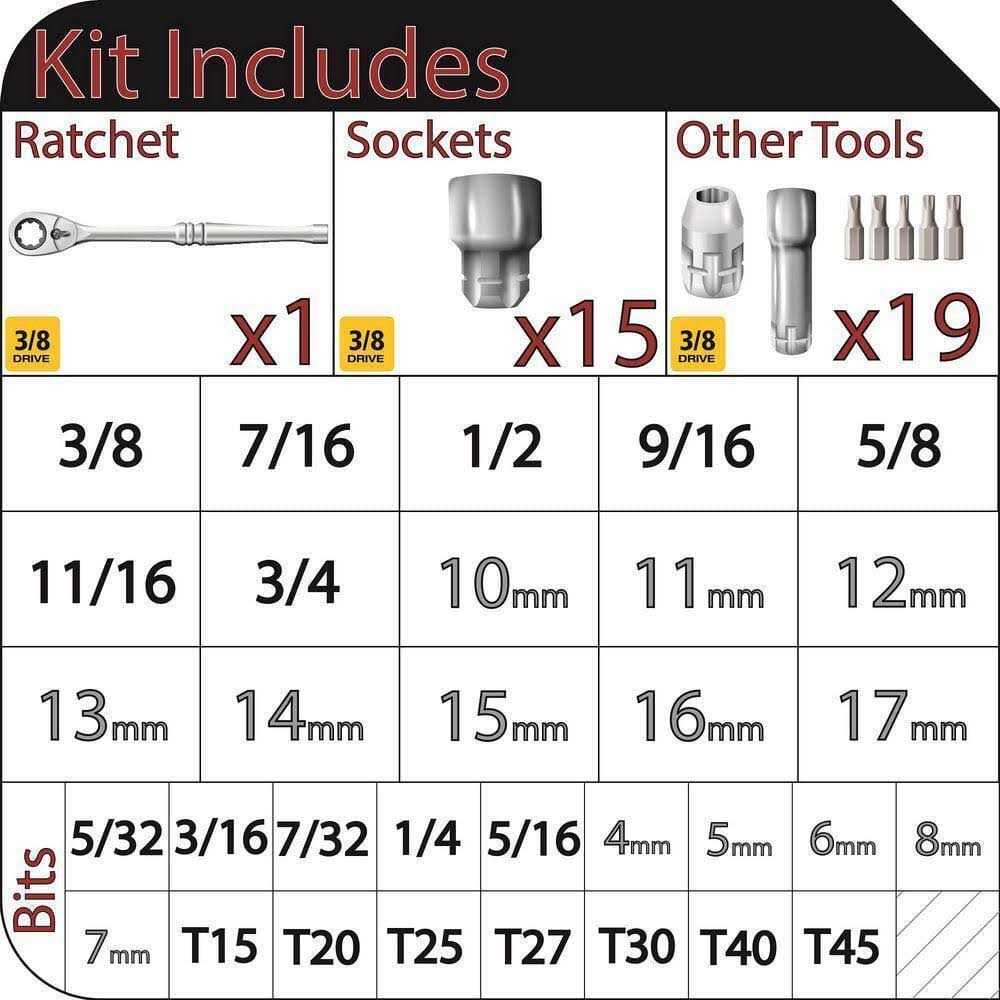 Drive Pass-Through Socket Wrench Set allows this set to tackle jobs that standard socket sets just can’t. The hollow sockets and ratchet head enables threaded rods and bolts to pass completely through the tool for unbeatable access, virtually eliminating the need for deep sockets. The tool tray features a clear case and fits into most tool box drawers for a convenient storage solution.