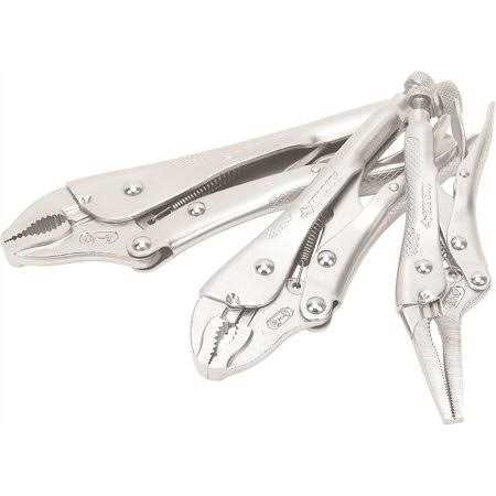 Curved Jaw and one 10 in. Curved Jaw. These locking pliers enable hands-free operation when used as a clamp to hold 2-pieces of material together until they are permanently joined or to hold materials for welding and similar applications. The locking device also makes it easy to hold oddly shaped objects for added versatility making these a handy must-have for any professional or do-it-yourselfer.
