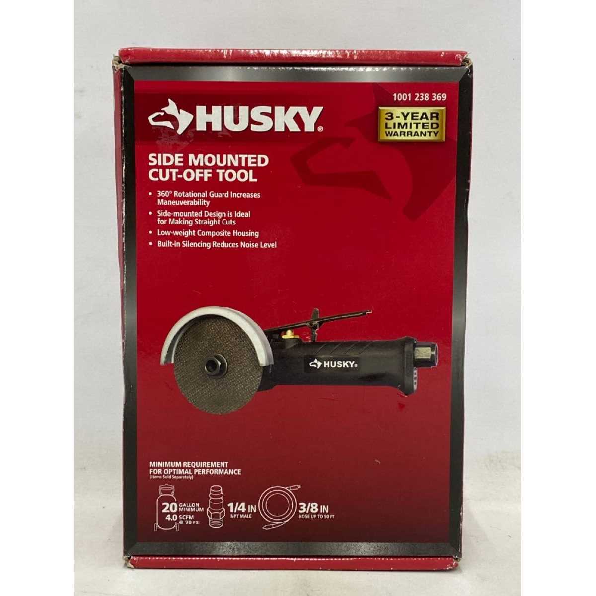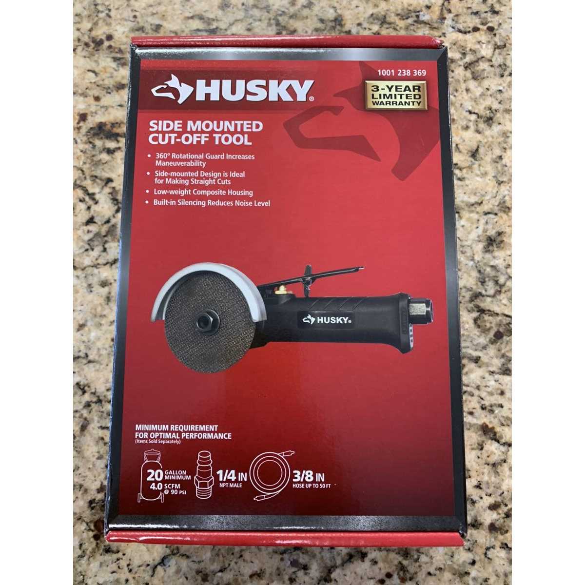 The new Husky air tool line in built to industrial standards for the professional user providing more power, less noise and longer life. Precision bearings reduce vibration while the internal silencing greatly reduces tool noise. The side mounted wheel is ideal for making straight cuts on many different materials. The tool operates at 20,000 RPM and is ideal for cutting sheet metal, plastics, composites, siding, auto mufflers, bolts, screws and rivets. The large motor design provides ultimate stall resistance.