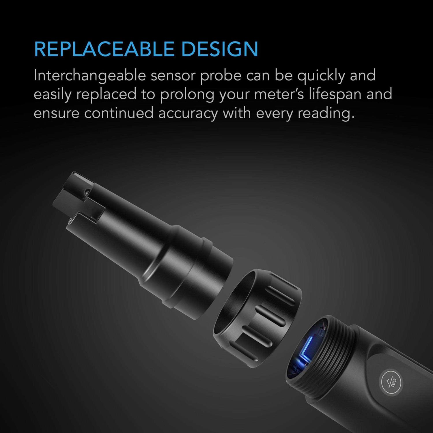 • Interchangeable Probe: Extend the life of your meter with ease, thanks to the replaceable sensor probe designed for consistent speed and accuracy.
