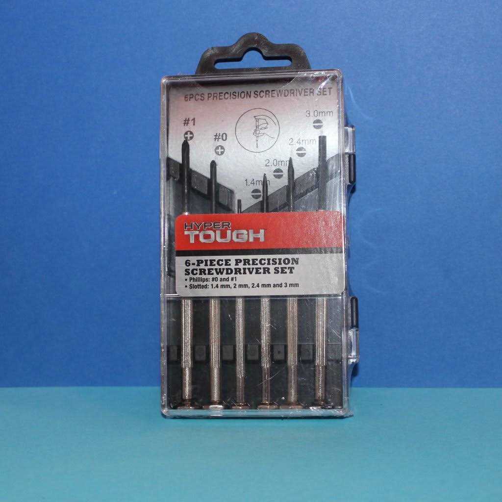 The Hyper Tough TS80037R Precision Screwdriver Set is great for projects and is easy to use. The set includes (1) each No 0 and No 1 Phillips and (1) each 1.4 mm, 2 mm, 2.4 mm and 3 mm slotted screwdrivers. Comes with convenient case for storage.