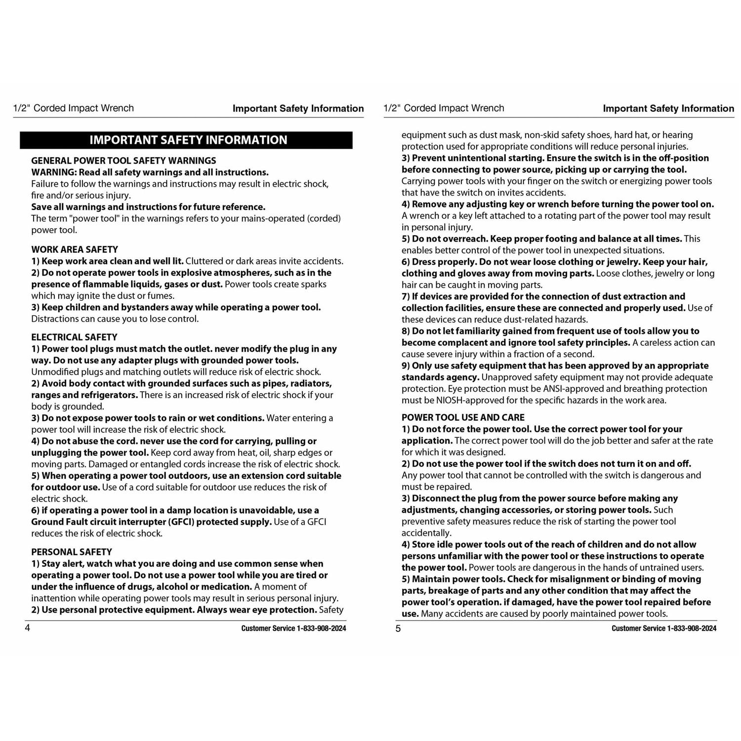 Hyper Tough 7.5A Corded Impact Wrench with 1/2 inch Anvil