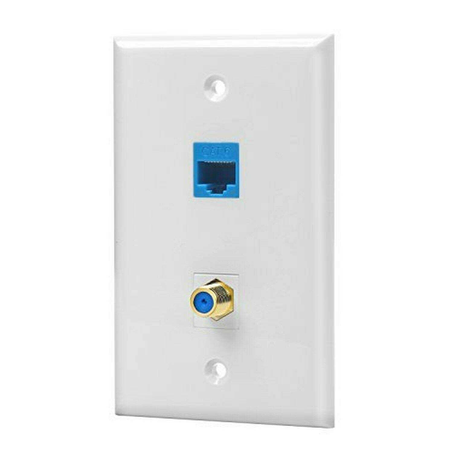 Easy to plug ethernet line cord into front and one into back, no punch-down tool required,female to female LAN connectors is meant to join together two Ethernet cables OR want to create ONE or TWO wall plate connections, extending your LAN cord for a longer length to gain LAN access Work with CAT6, CAT5e cables, or used with a “keystone” wallplate, patch panels, or surface mount boxes Standard for keystone wallplates and blank patch panels Gold plated contacts and easy snap-in retaining clip ensure a secure and corrosion free connection This wall plate contains 1 cat6 ethernet port and 1 coax F-type port, which can be applied for satellite, TV coax cable and ethernet connection. The coax keystone wall plate provides a perfect solution for networking, audio,video and more DIY project of home office, hotel, Laboratories and shops etc.