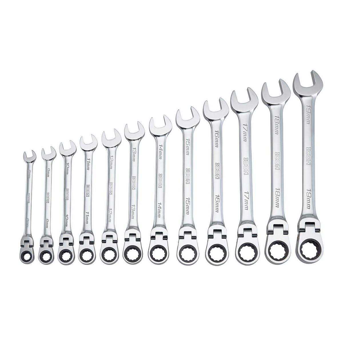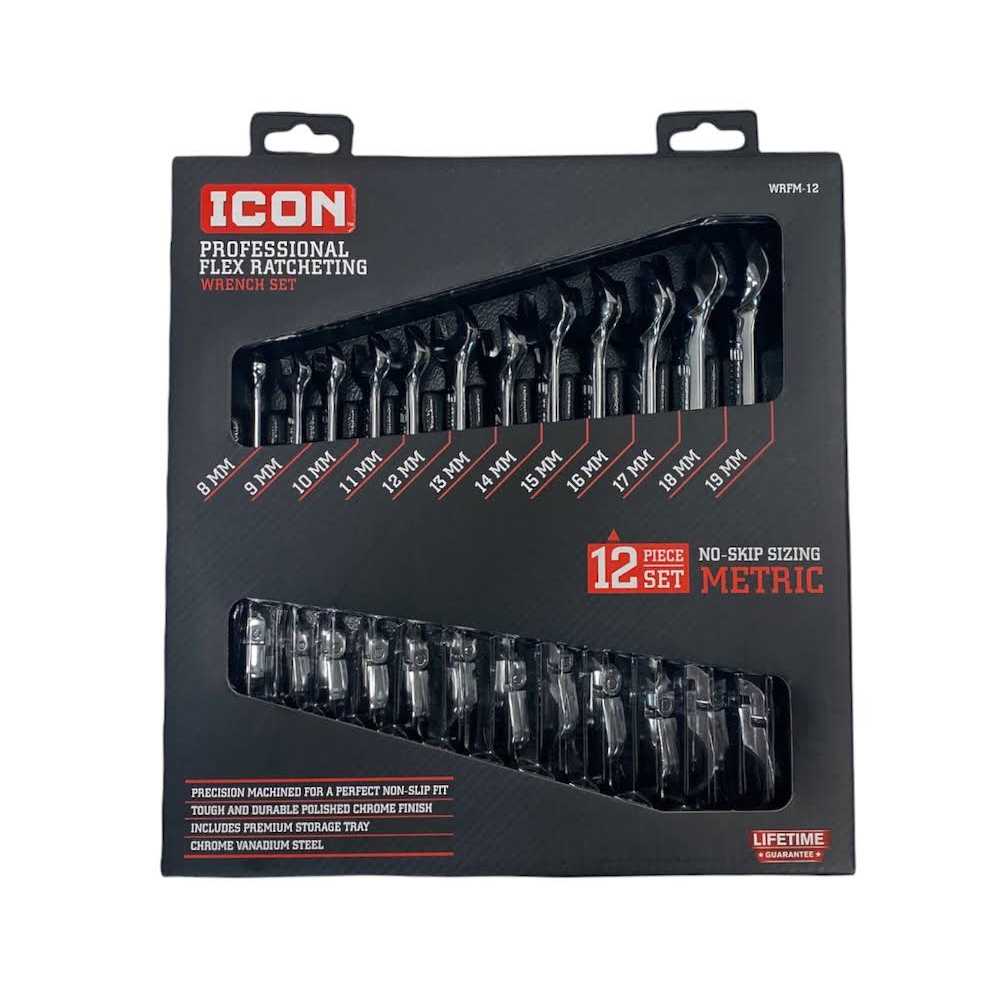 Icon Metric Professional Flex Ratcheting Wrench Set 12 Piece