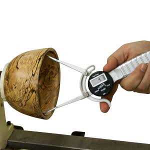 The great advantage of these calipers is that they are direct reading. Not only can you set the opening without reference to a ruler, you can also check dimensions quickly and easily, with measurements displayed in large, easy-to-read numerals on the LCD screen. Both inside and outside calipers read in fractional inches, decimal inches or millimetres (to a resolution of 1/64″, 0.01″ or 0.1mm), and instantly convert among units. Quick-setting sprung legs help ensure that the tips maintain contact with the workpiece, and a thumbscrew locks the opening. Accurate to 0.01″, the calipers can be zeroed for differential measuring, and a “hold” button keeps the measurement displayed after the legs are released, so you don’t have to commit it to memory. The outside calipers have 4″ legs with a 7″ maximum opening; the inside calipers have 3 1/4″ legs with a minimum opening of 1/2″ and a maximum opening of just over 6 3/4″. Each has a 4″ handle and comes with two button-cell batteries (one installed and one spare).