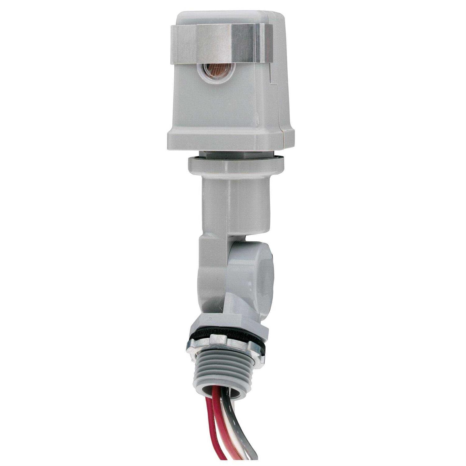 Photoelectric Sensors by Intermatic. Details: These photocontrols are provided with a swivel arm for easy and flexible installation to standard outdoor light fixtures or electrical boxes. This series features single and multi-volt models in stem mount with a swivel. All models are equipped with a light level slide adjustment and provide a 1/2-Inch-14 threaded stem. A washer gasket and locking nut are packaged with each Photocontrol.