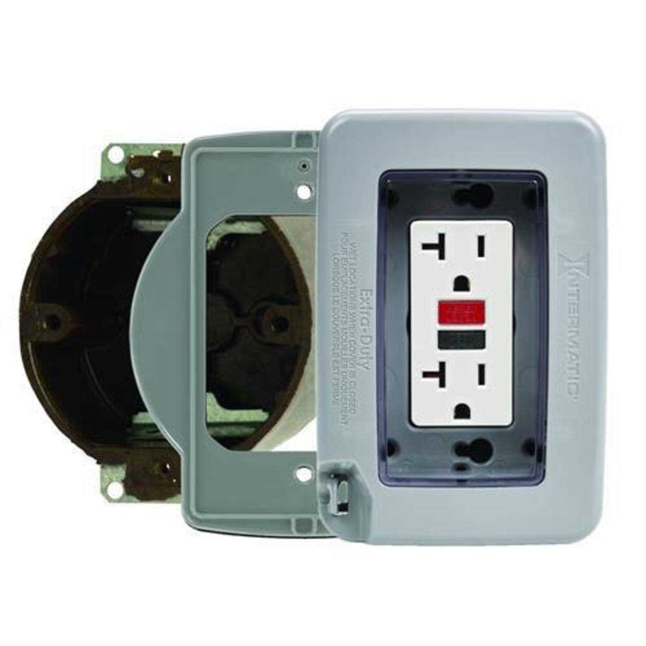 Intermatic low-profile extra-duty plastic in-use weatherproof covers are extra-duty rated and easy to install. Covers come with an adhered gasket, mounting screws, base, cover assembly and inserts to meet the needs of a variety of applications. Time-saving installation that is pre-set for GFCI applications.