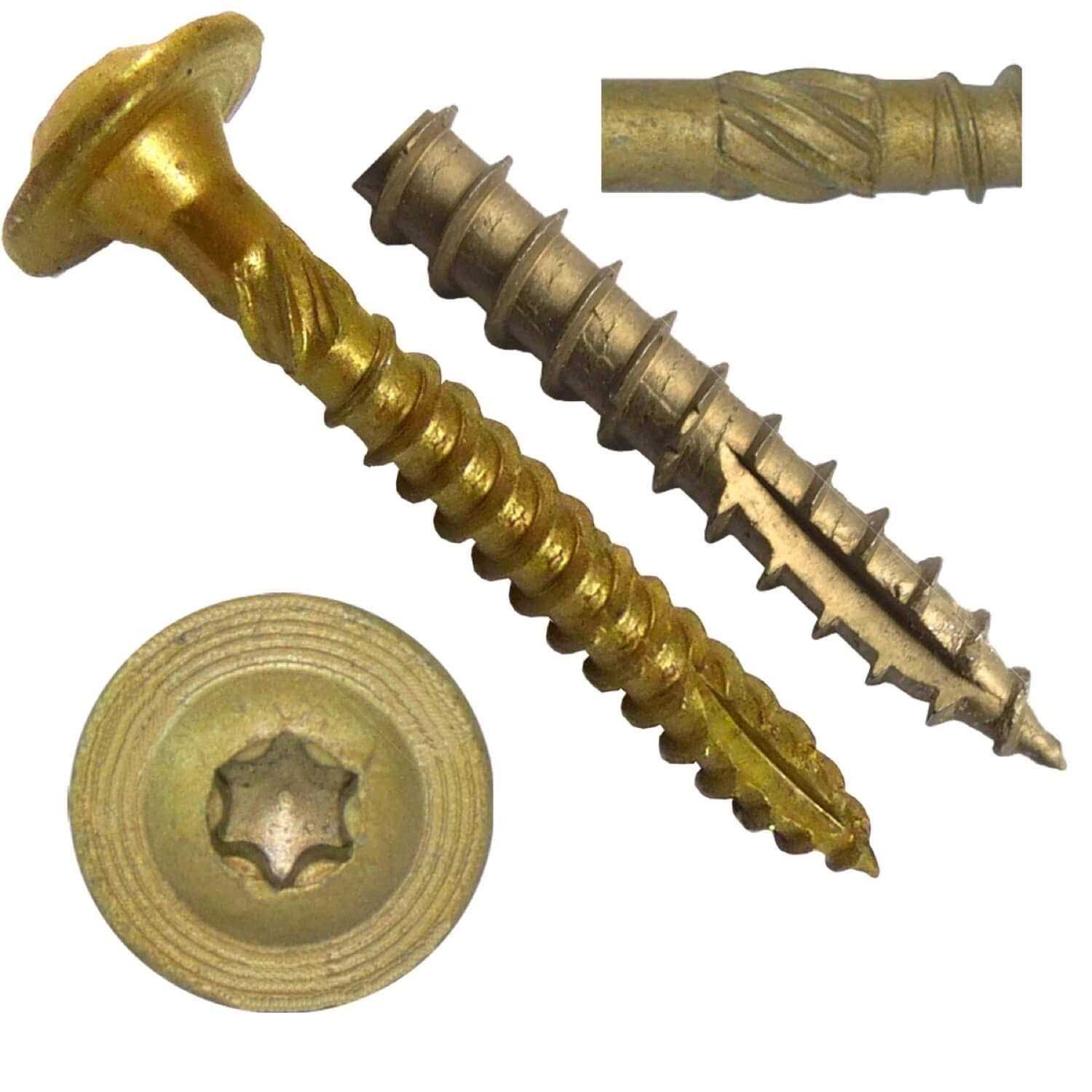 High Performance Exterior Coated Star/Torx Drive Wood Screws (1,000 LAG SCREW COUNT) Torx Drive Modified Truss (Washer) Head Provides High Compression Forces & Neat and Finished Appearance. Type 17 Notched Extra Sharp Wood Screw Point Reduces the Need for Pre-Drilling in Even Hard Woods Quality Wood Screw Thread Require Less Torque to Drive the Screw & Provide Maximum Holding Power Torx/Star Drive Wood Screw Head Provides Twice the Torque of Phillips or Square Drive Screw Heads