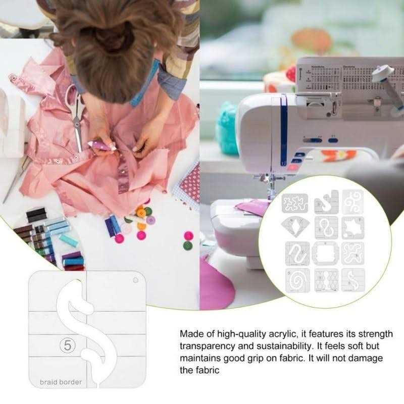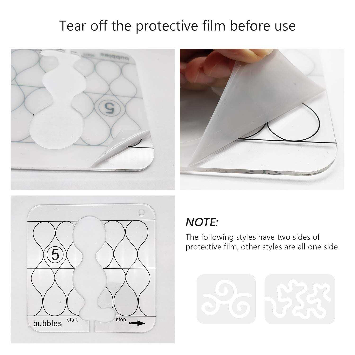 These flexible motion quilting templates and kits are good for designing different kinds of unique patterns, which can be considerate gift for your friends, parents, grandparents or sewing projects lovers in your life, which is sure to win their preference. Easy to use: Just use the correct installed sewing machine ruler foot, follow the path inside the template. Spin the ruler 180 degrees after reaching the end of the open path. This ruler border sampler template set for sewing machine can create beautiful borders to compliment your quilt designs. Time for design: All types of sewing machine domestic templates help you to quilt different patterns, a good helper for household sewing machines. Package includes: 11 x Series Free-Motion Quilting Templates 1* Stainless Steel Low Shank Ruler Foot Free Motion Darning Foot 48pcs Non-Slip Grips for Quilt Templates Note: Please allow slight size error due to manual measurement. The template ruler is covered with opaque protective film on both sides. When using for the first time, please gently tear off the protective film on the surface.