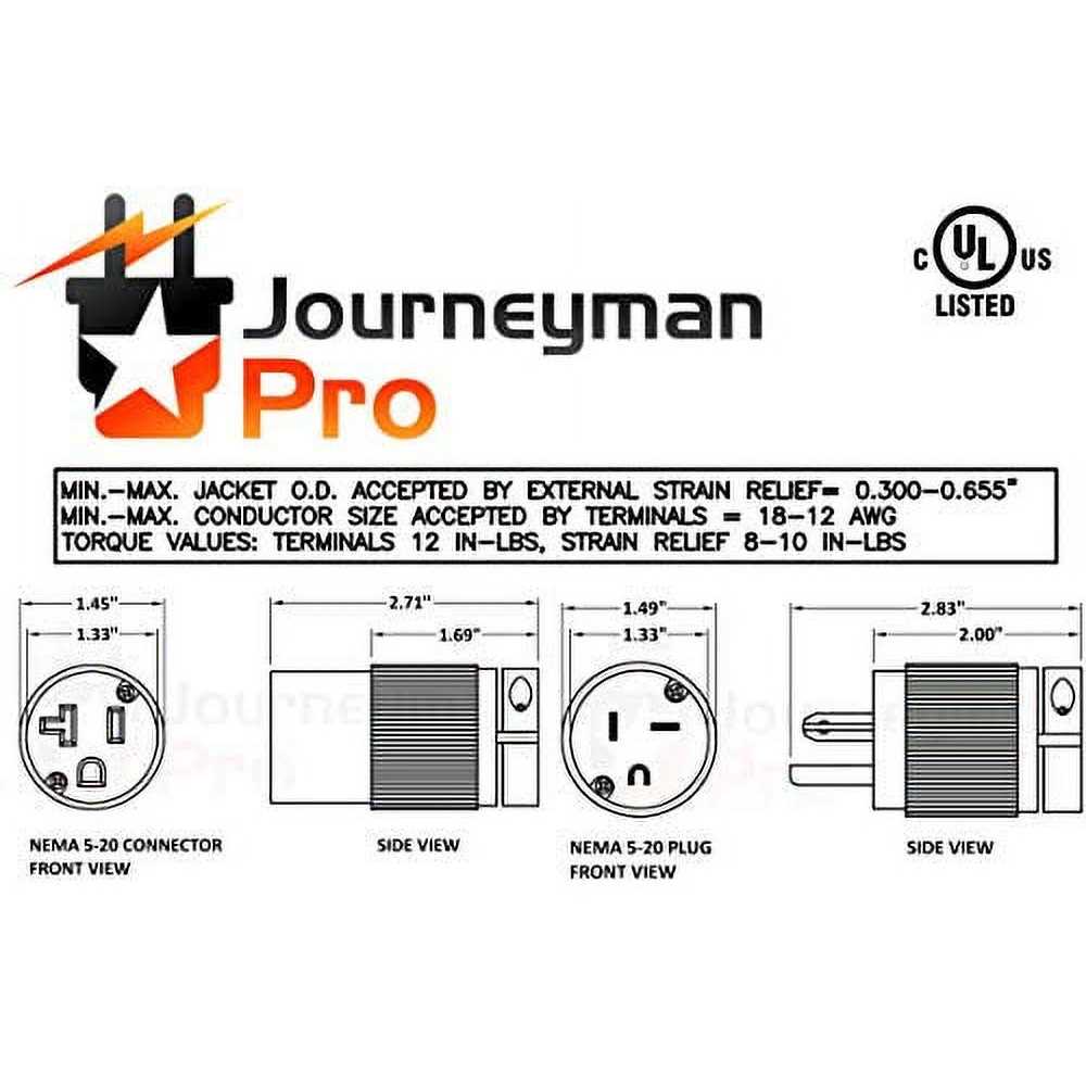 Journeyman-pro 520pc Plug & Connector Set 20 Amp 120-125 Volt, NEMA 5-20P + 5-20C, 2Pole 3wire, Straight Blade, male & Female