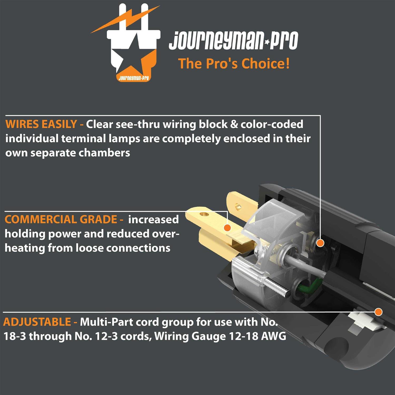 The Journeyman-Pro Series Industrial/Commercial Grade Connector Features: Extra Tough Nylon/PVC Construction that Won’t Crack in high abuse applications. Individual deep-funnelled chamfered wire wells, GUIDE each wire into rectangular chambers and the wire clamps Bundle Stranded WIRE without cutting wire strands. 20 AMP – 2500 Watts 125 AC Volts Rated Terminal ID: Brass-Hot, Green-Ground, White-Neutral Terminal Accommodates: 12-16 AWG, NEMA 5-20P Male Plug, 5-20C Female Connector, Industrial Specification Grade, Grounding, 2 Pole, 3 Wire. Multiple Uses 2500 Watts, Perfect for Generators, Welders, Sump & Well Pumps.