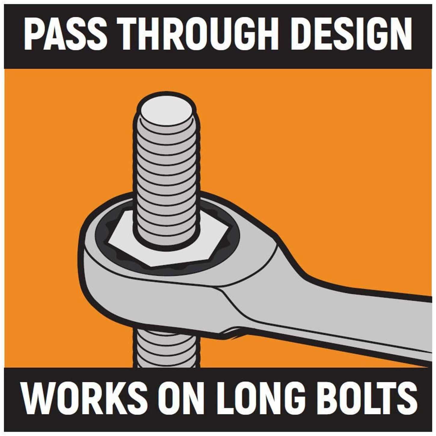 - Zero degree offset on non-ratcheting end for breaking loose stubborn fasteners