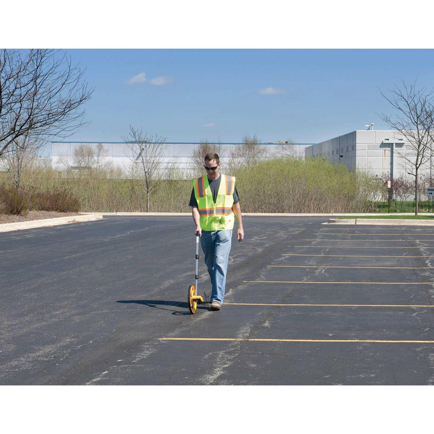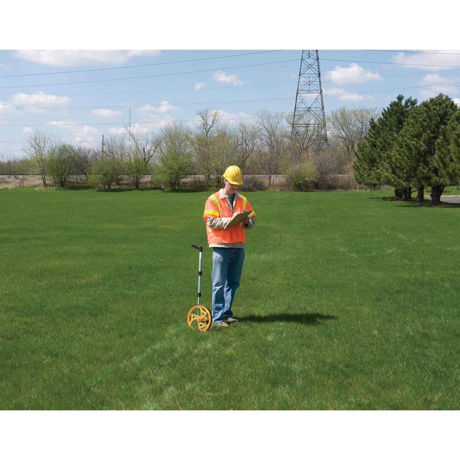 When you need to measure long distances, the KESON RR318N Measuring Wheel is an essential tool. It is designed for accuracy and comes with a telescoping handle that helps you to control it more easily. The wheel measures 39 17/64 in. in circumference and has a 5-digit magnified counter on its side. Made of molded ABS frame and polycast wheel, this measuring wheel is both durable and lightweight. This mechanical measuring wheel has a 38 in height, 7 in width, and 38 in length overall. The rim of the wheel is made of ABS material for added durability. The KESON 3 Ft Measuring Wheel is the perfect tool for making accurate measurements on large jobsites or even outdoor projects like landscaping work.