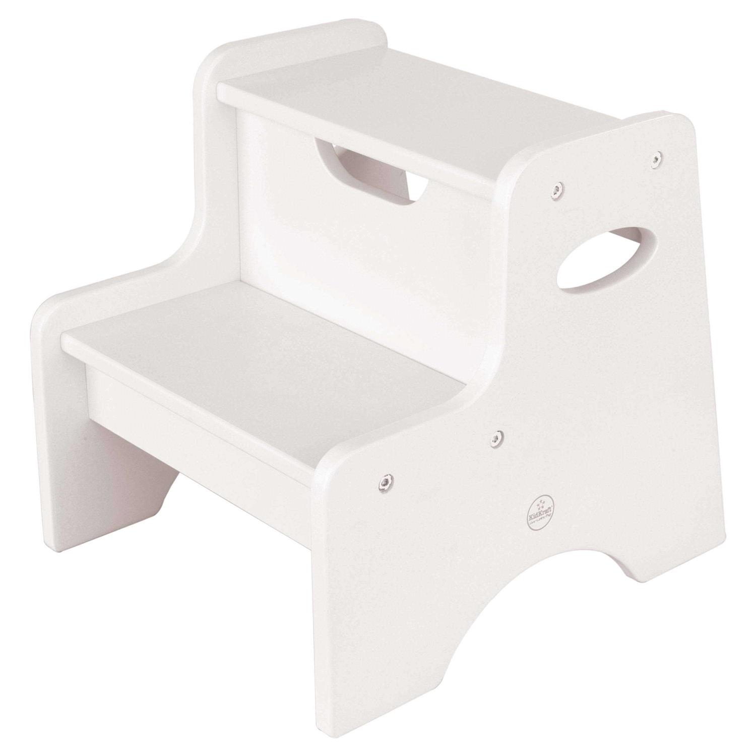 That extra step perfect for those hard to reach places like brushing teeth and helping mommy this two-step stool has that extra step making it easier for toddlers as well as a few more inches in height. Sturdy kidkraft stool combines solid workmanship with style. Appropriate for children ages 3 to 8 years old. Measures: 15. 38in l x 13in w x 14. 13in hlow step is 6in h available in white and natural.