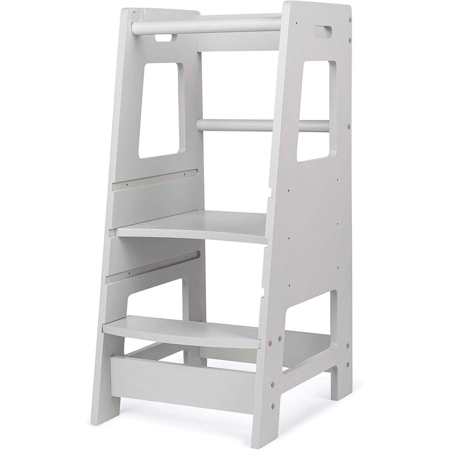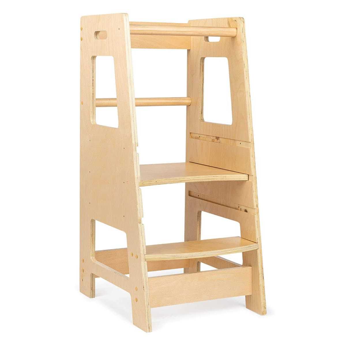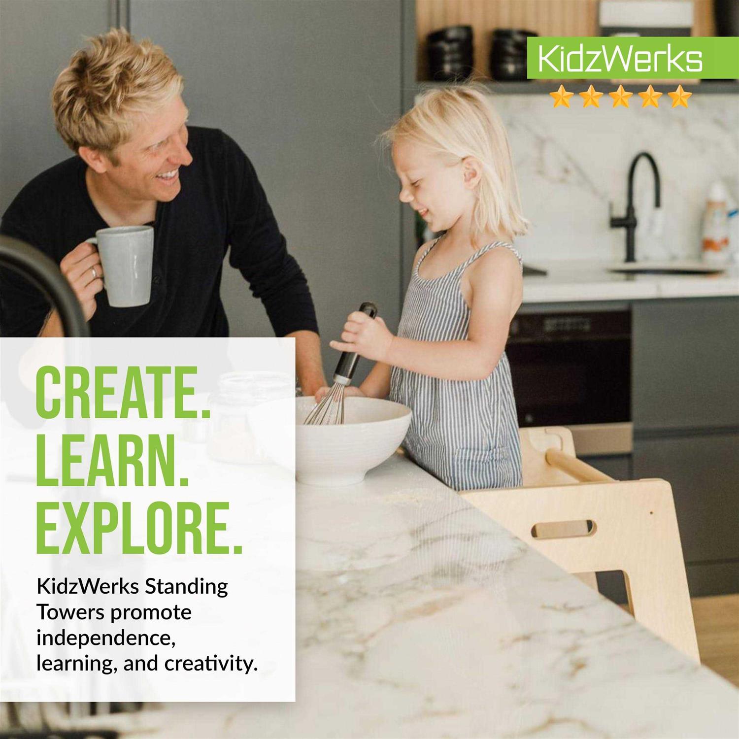 Open-Box — The Child Standing Tower by Kidzwerks! The Kidzwerks Child Standing Tower is the perfect gift for all parents with children 1-3 years old who are looking for some extra help in the kitchen! This KidzWerks wooden kitchen helper step stool has three adjustable levels in order to allow all children the ability to help out in the kitchen! This stylish standing kitchen tower is made of birchwood plywood and is very safe and durable for your toddler! The removable safety rod allows for easy entry and exit for kids who are learning to help in the kitchen! Kidzwerks is dedicated to providing great products for all families and each standing tower step stool was inspected to ensure the highest level of quality and safety. KidzWerks: Helping Little Ones Dream Big!