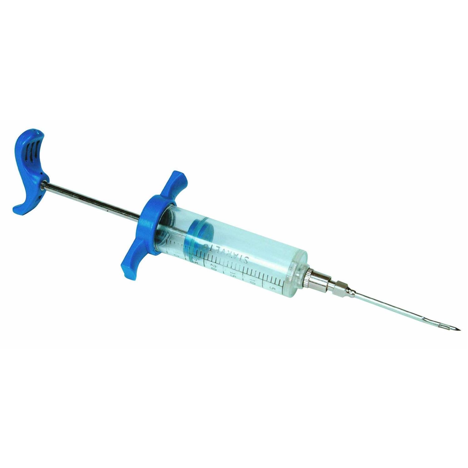 Introducing the King Kooker TI8, a heavy-duty deluxe plastic marinade injector designed to enhance the flavor of your favorite meats and dishes. This injector provides a convenient way to infuse your marinades and seasonings into your food, ensuring every bite is packed with delicious flavors. The TI8 marinade injector features a 1 oz capacity, allowing you to inject a precise amount of marinade into your meats for optimal flavor distribution. The injector is made from durable and high-quality plastic, ensuring its longevity and performance. Included with the TI8 marinade injector is a needle that allows for easy injection into your meats. With this needle, you can effortlessly penetrate the meat to deliver the marinade deep into its fibers, resulting in juicy and flavorful results. Whether you’re marinating chicken, beef, pork, or any other meat, the King Kooker TI8 marinade injector is a versatile tool that allows you to take your culinary creations to the next level. Enjoy the convenience and precision of this injector as you infuse your favorite flavors into your dishes, making every bite a delight for your taste buds.