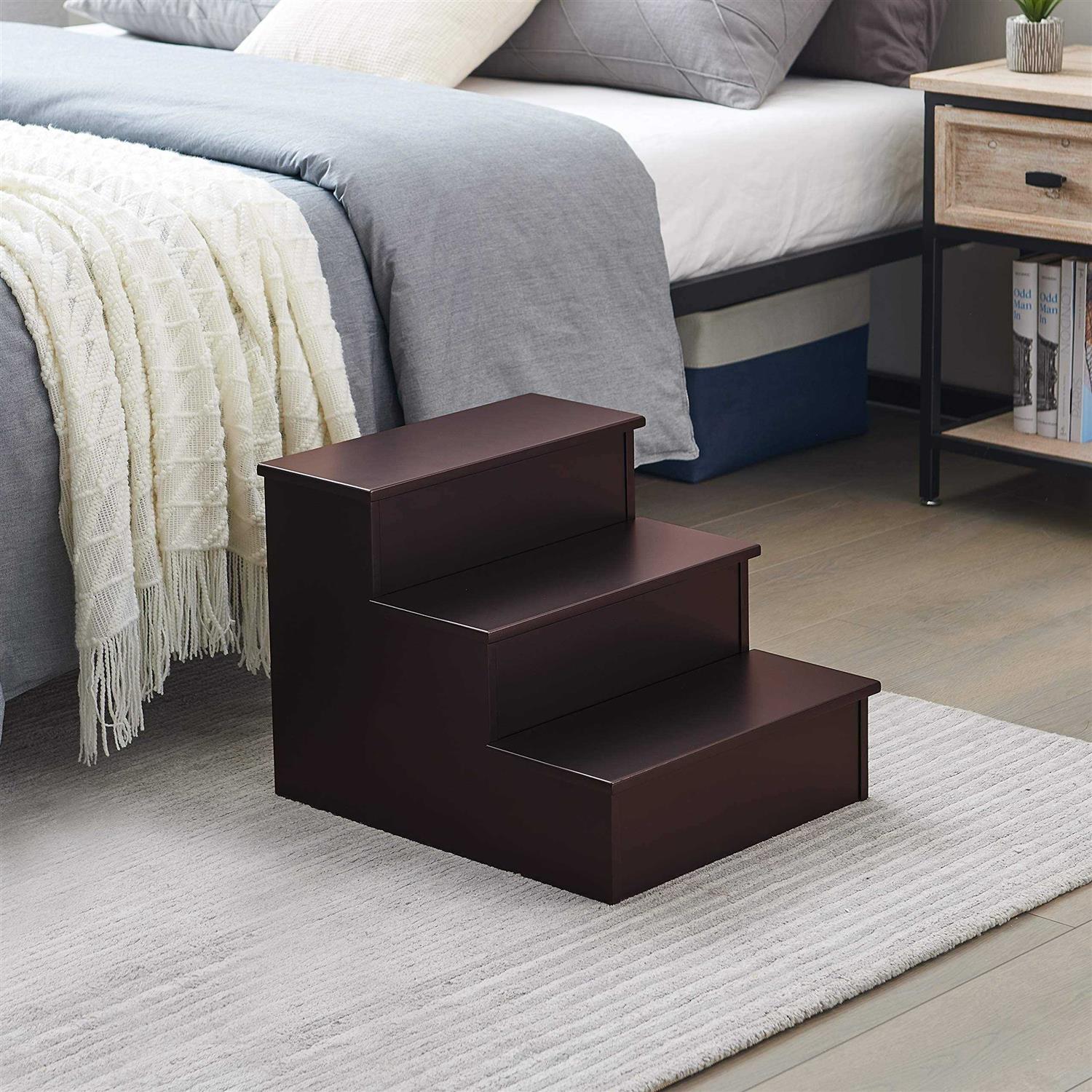 Kings Brand Furniture – Darien 3 Step Wood Step Stool for Adults or Kids, Dog Stairs, Cherry