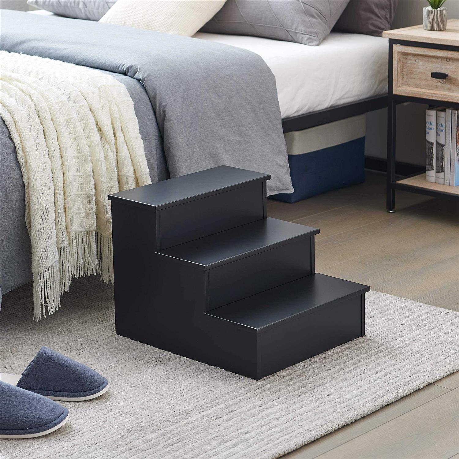 Kings Brand Furniture – Darien 3 Step Wood Step Stool for Adults or Kids Dog Stairs Black
