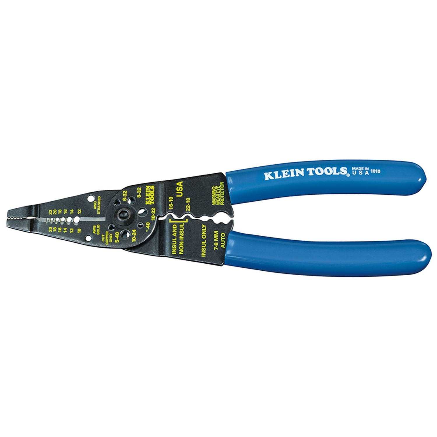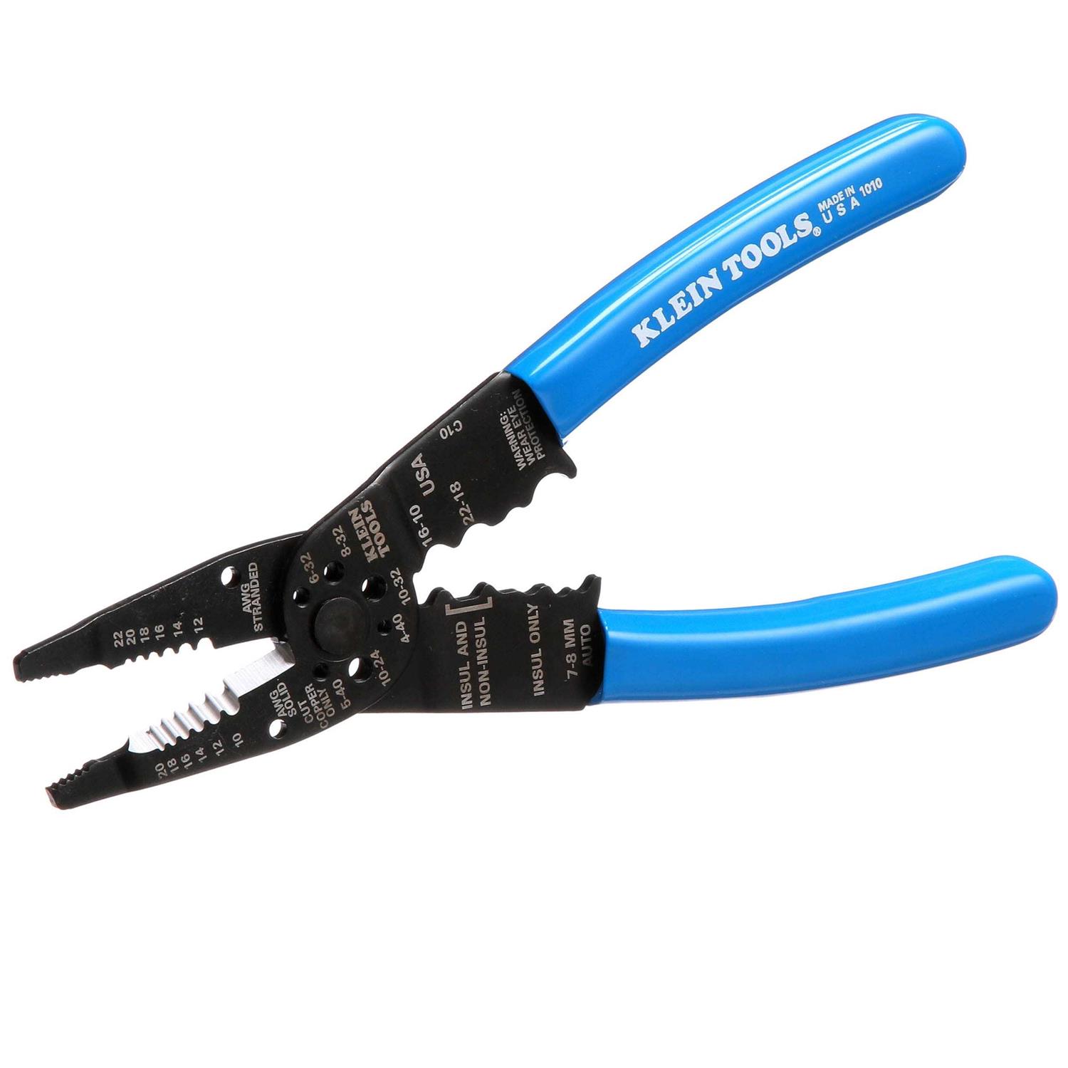 The Klein Tools Long-Nosed Wire Stripping Tool will help you accomplish a variety of projects. It has a strong steel construction that delivers professional-grade durability. It features a long, tapered nose, a wire crimper and bolt-cutting holes. This crimping stripping tool comes with gauge markings that make tasks easy and precision-fitted jaw that ensures clean, accurate performance. It also includes comfortable plastic-dipped grips that help minimize hand fatigue when working for extended periods of time. The Klein Tools Long-Nosed Wire Stripping Tool is designed to work with steel, aluminum, brass, copper, gold, silver and plastic.