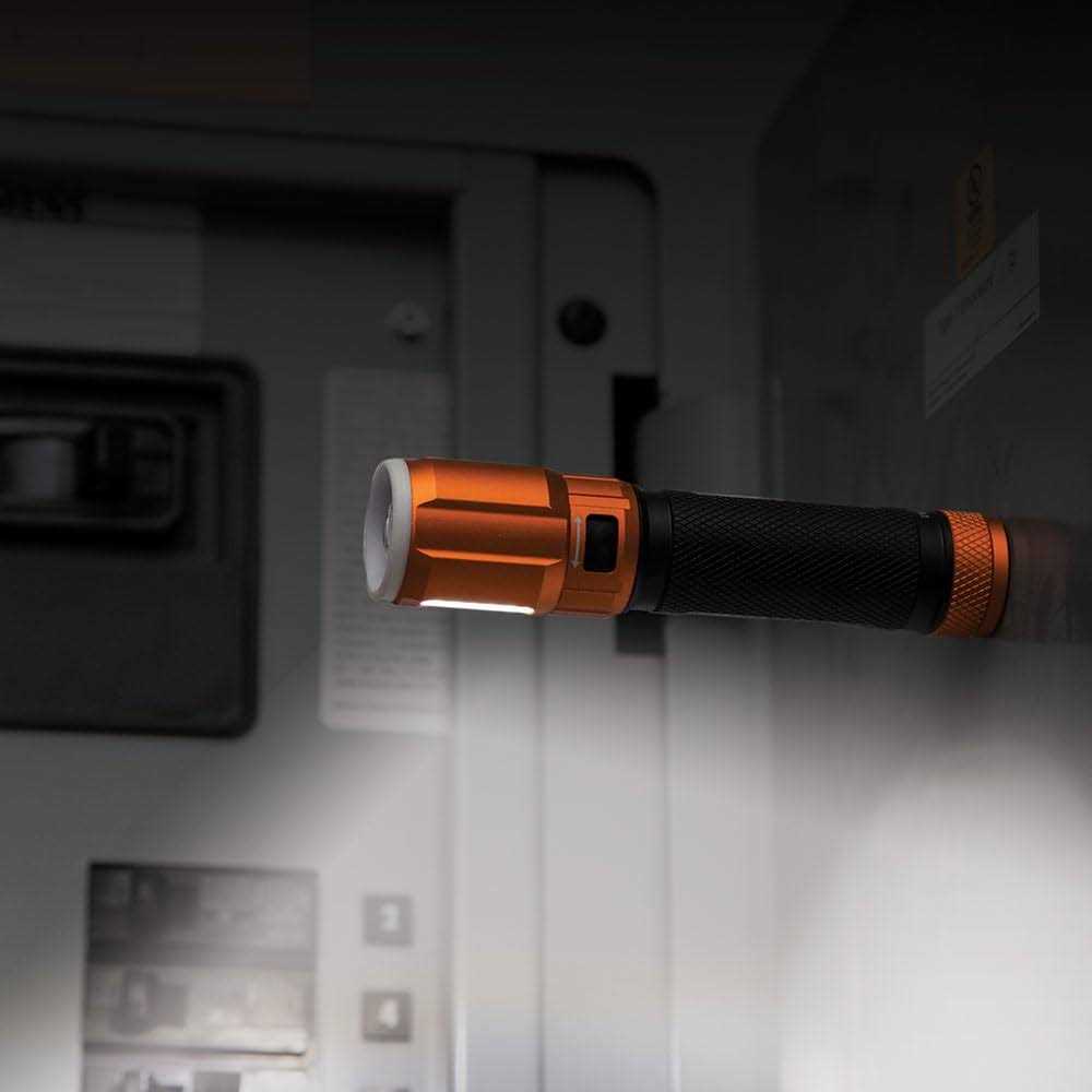 Klein Tools Rechargeable LED Flashlight with WorklightKlein Tools’ rechargeable flashlight also works as a handy work light with its magnetic end cap and side-barrel LEDs. This versatile light offers 5 total modes. Smartly designed to turn back on in the same mode you last turned it off, so fewer clicks to get to your favorite mode. This durable flashlight is IP66 dustproof and water-resistant, making it a perfect everyday light on the job site.