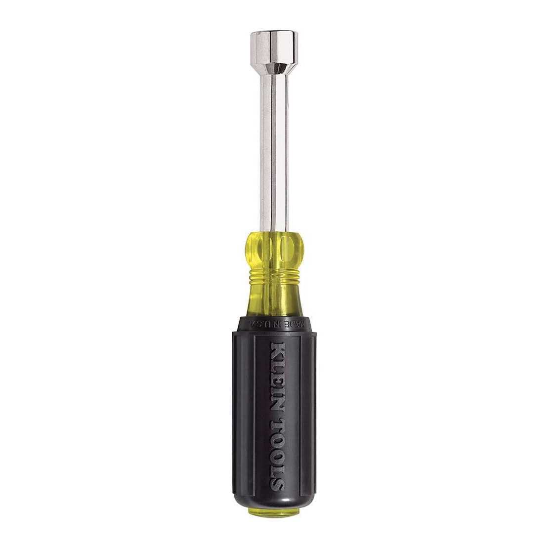 The full hollow shaft design facilitates work on stacked circuit boards or other long bolt or stud applications. Klein’s exclusive cushion-grip handle offers greater torque and outstanding comfort. The patented Tip- Ident quickly identifies nut driver and size. Standard length for most applications. Fits over long bolts and studs. Full hollow shafts facilitate work on stacked circuit boards or other long bolt applications. Internal flanges provide solid, twist-resistant shaft anchor. Premium chrome plated for smooth feel and corrosion resistance. Meets or exceeds applicable ASME / ANSI specifications. Handle end is also color coded for easy identification. Cushion-Grip handle allows for greater torque and comfort. Tip-Ident quickly identifies nut driver and size.