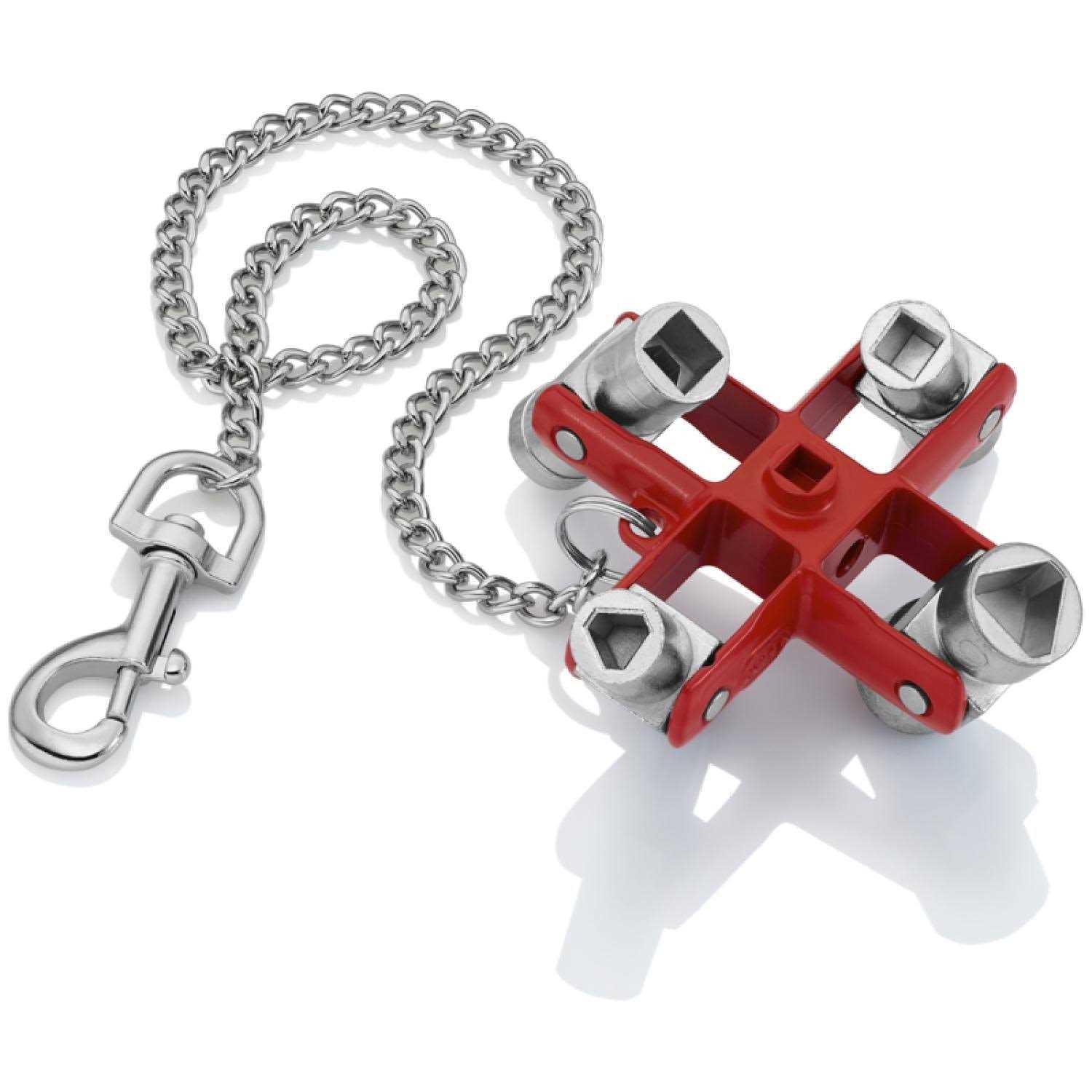 Knipex Tools is the world’s largest manufacturer of professional pliers since 1882. Knipex Pliers Cutters Insulated Tools and other products have been the tools of choice for Professional Tradesmen and end users who are serious about their hand tools and demand industrial quality. Knipex Tools are made from start to finish utilizing the highest quality materials. Based in Germany KNIPEX Tools are German engineered to produce a tool unmatched in the industry in terms of features comfort design and performance. The Universal Control Cabinet Key is useful for locking systems in electrical engineering the supply of gas and water air conditioning and ventilation systems and more. This handy tool also includes a detachable chain and snap hook for added usability.