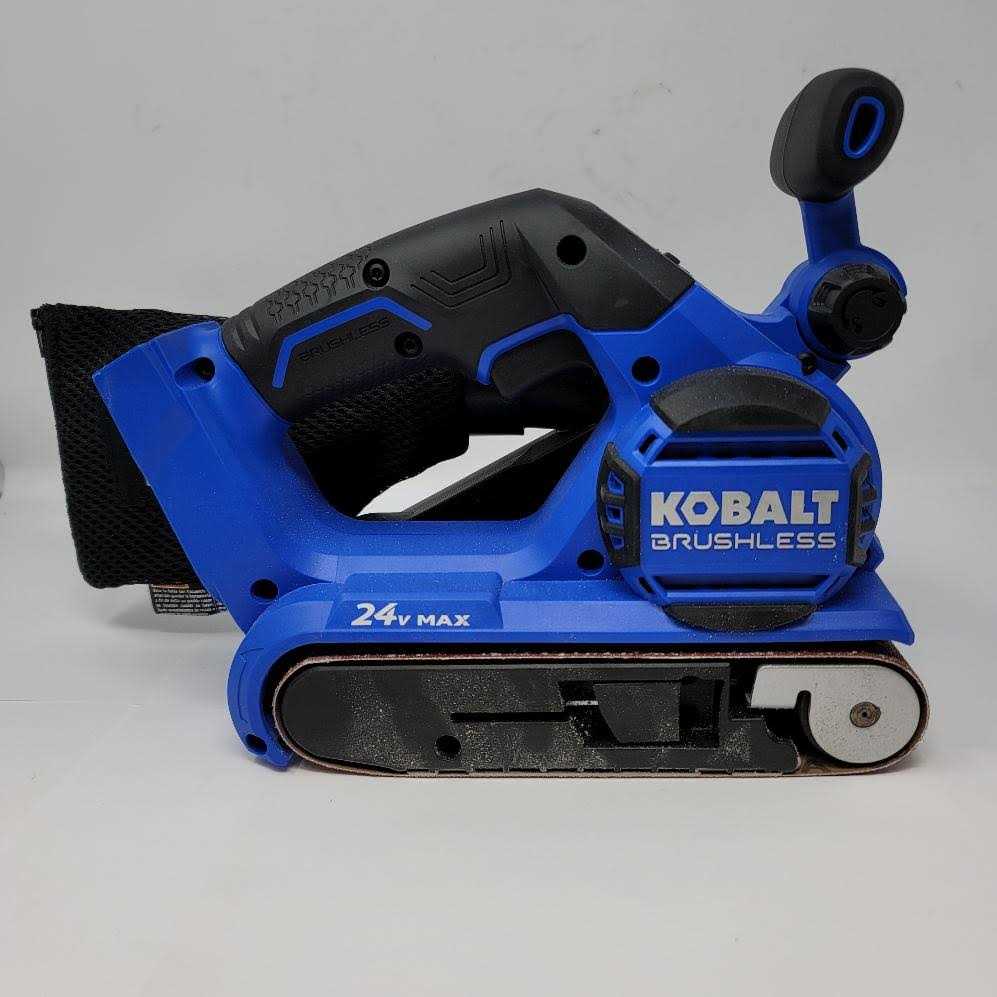 Battery and charger sold separately. Ability to hook up to a wet/dry vacuum with 1-1/4-inch hose 3-Inch x 18-inch cordless belt sander, 400 to 1000 FPM (feet/min) belt speed Tool-less belt tracking, Flat face allows for sanding flush to vertical surface Ergonomic handle with overmold and lock-on feature. Pommel handle adjusts to 4 positions for optimal ergonomics Removable dust collection bag, Speed adjustment dial with 6 modes The Kobalt 24-Volt Max 3-In x 18-In Belt Sander is ideal for all your wood working projects. The brushless motor produces speeds up to 1000 FPM (feet per minute) for more runtime, more power, and longer motor life. The belt sander offers a 4 position, tool-less adjustable pommel handle for optimal ergonomics. It is compatible with all Kobalt 24-volt batteries and chargers (sold separately).