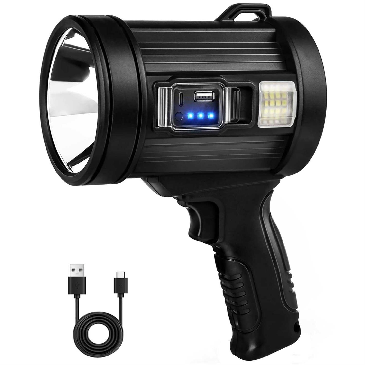 LBE Rechargeable Spotlight Outdoor 900000 Lumens Solar Handheld Led Spotlight Flashlight with Cob Light and Solar Panels