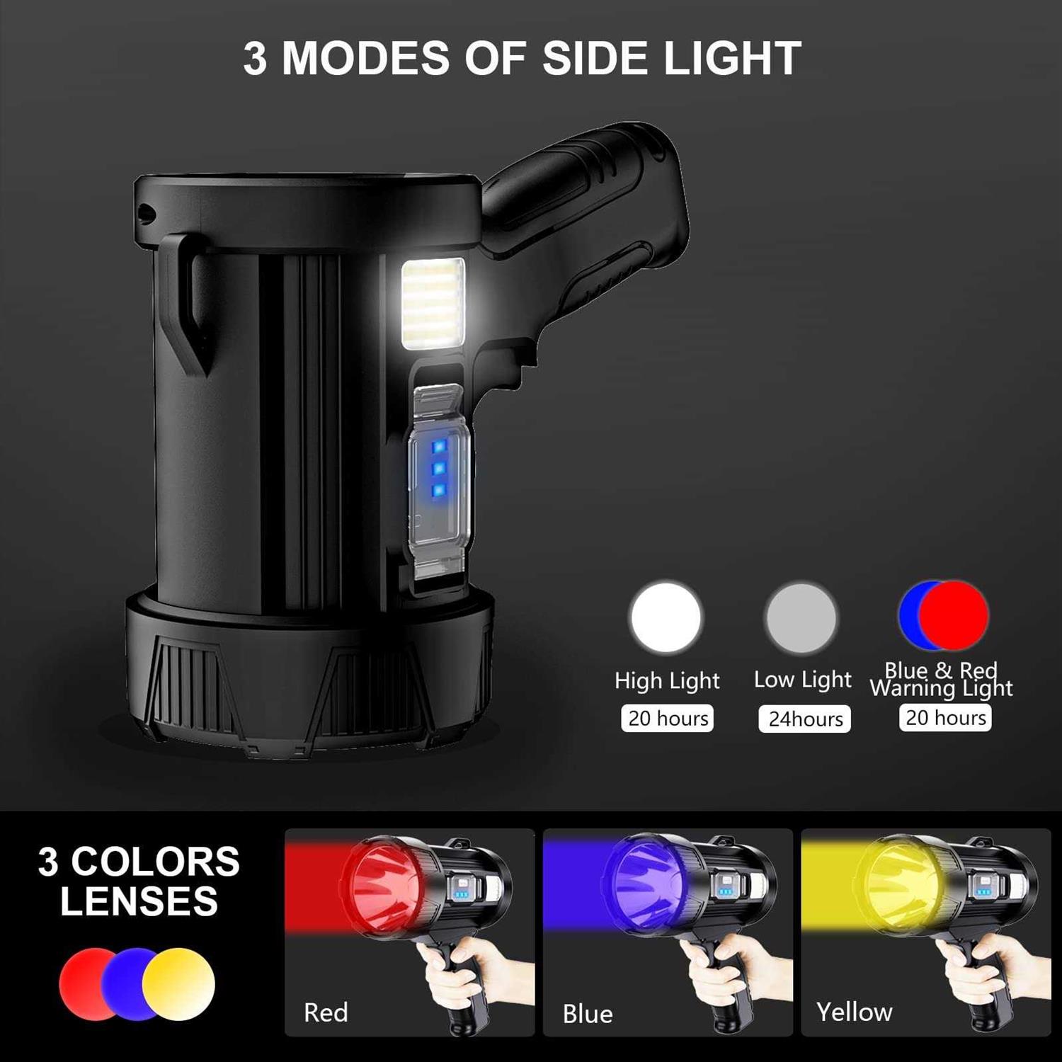 LBE Rechargeable Spotlight Outdoor – 900000 Lumens Solar Handheld LED Spotlight Flashlight with COB Light and Solar Panels – Lightweight and