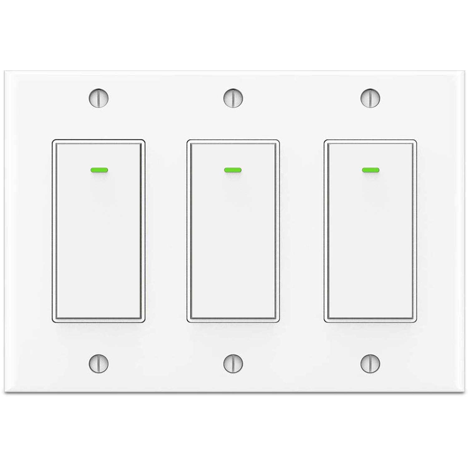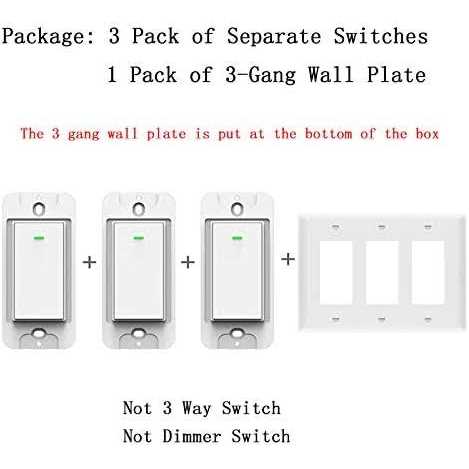 Verify Compatibility: 1. Replaces Single pole switch only. Not compatible with 3- way (multi location control) switch 2. Neutral wire required. 3. Only support 2.4GHz Wi-Fi, not support 5.0GHz Wi-Fi 4. Not compatible with Apple HomeKit, Samsung Smartthings, Nest, Wink, Vivint 5. Your Wifi account and password had better not contain symbol and space 6. Package: three separate switches with one wall plate. The 3-gang wall plate is put in the inner box Note: I