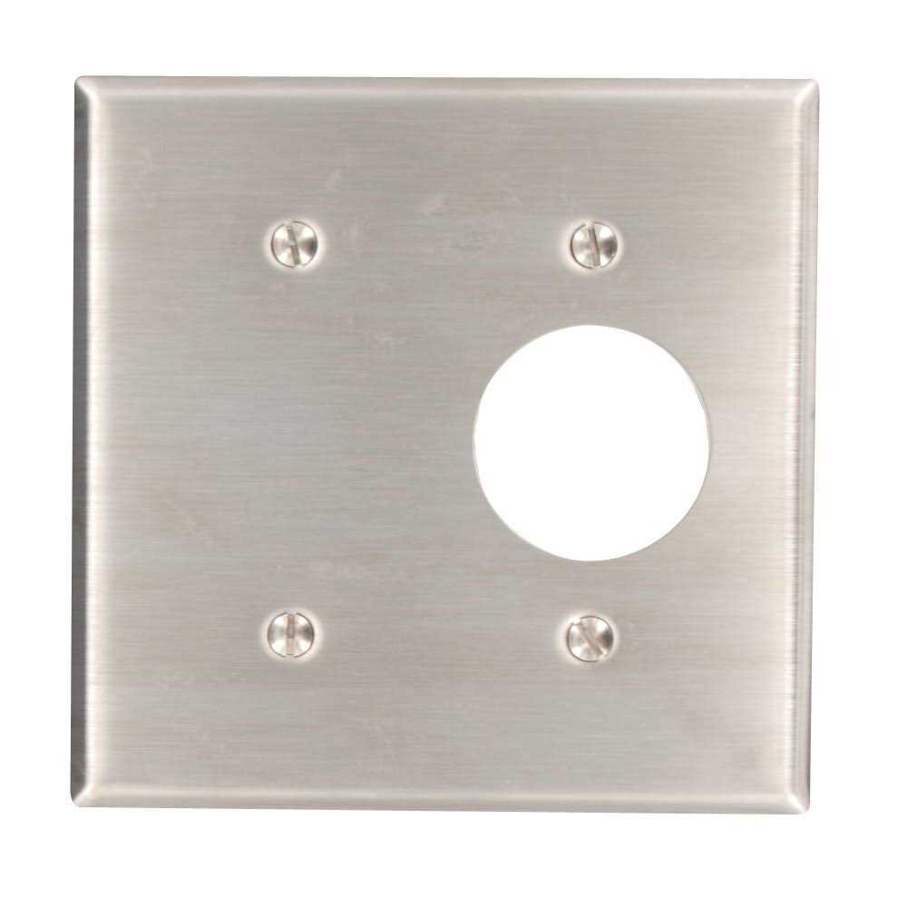 Leviton 84085-40 2-Gang 1-Blank 1-Single 1.406-Inch Diameter, Device Combination Wallplate, Standard size, Strap Mount, Stainless Steel