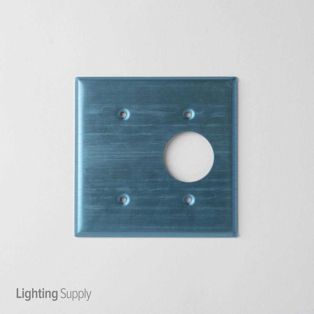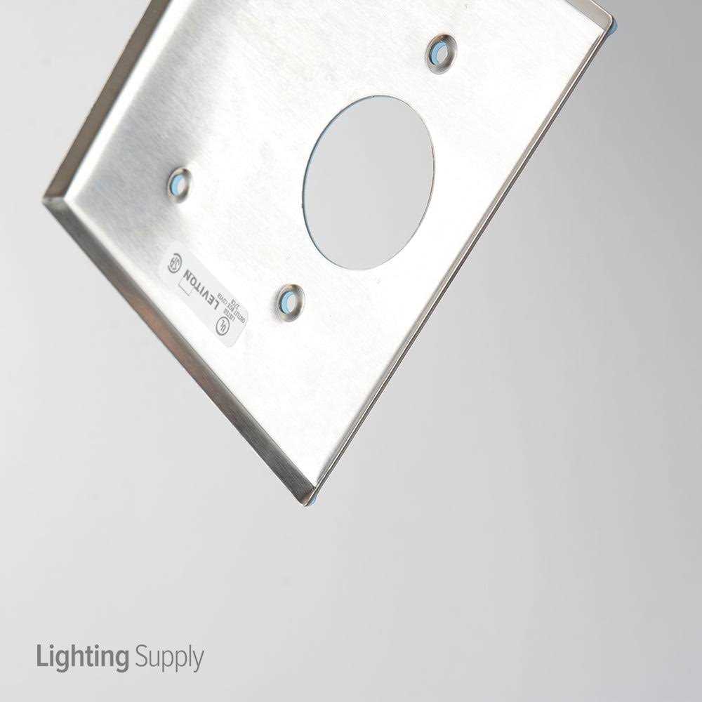 Leviton Standard size 2-Gang combination wallplate in stainless steel color, has 302 stainless steel construction with smooth finish. It measures 4.5-Inch x 4.56-Inch. This 0.22-Inch thick square wallplate supports strap mounting and comes with 0.406-Inch x 0.942-Inch cut-out. It has one blank and one single receptacle configuration. It is suitable for residential and commercial applications. Combination wallplate is UL listed and CSA certified.
