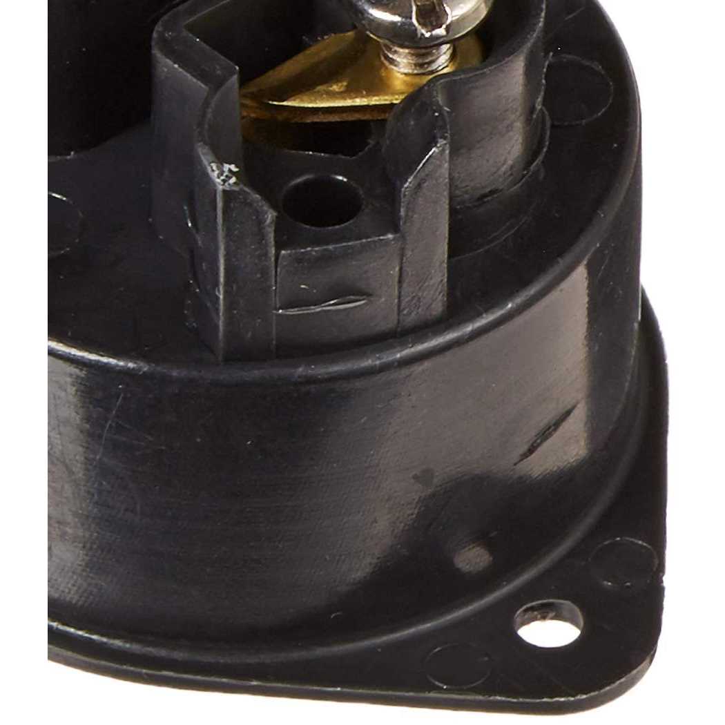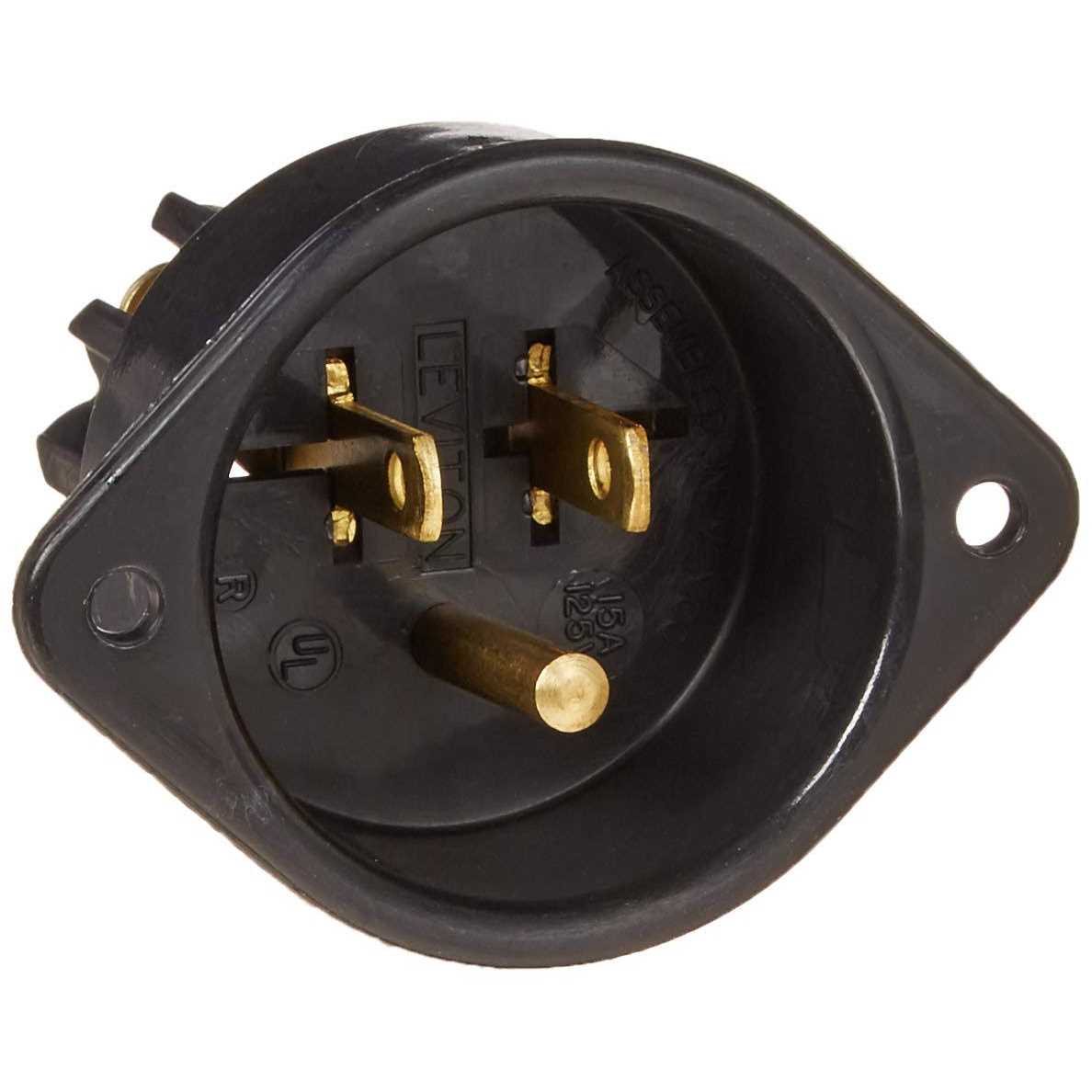 Leviton 2-Pole Flanged inlet receptacle in black color features a durable nylon face and body construction. Straight blade receptacle has current rating of 15 Amps and voltage rating of 125 Volts. It operates at a temperature of -40 to 60 deg C. Inlet receptacle withstand dielectric voltage of 2000 Volts. Inlet receptacle has flammability rating of UL94 V-0 to withstand harsh environmental conditions. It has back wired connections for easy installations. Receptacle has three-wire circuitry. It has back wired connections for easy installations. Inlet receptacle operates at maximum temperature rise of 30 deg C after 50 over load cycles at 150% of rated current. Inlet receptacle has brass-hot, green-ground, white-neutral terminals for easy identifications. It has thermoplastic strap for enhanced durability. Inlet receptacle accommodates 18 – 12 AWG terminals. It is widely used for commercial and industrial applications. It measures 1.687 Inch diameter x 1.718 Inch and has a flange diameter of 2.500 inches. Inlet receptacle is UL listed, CSA certified and meets NEMA/NOM/ANSI standards.