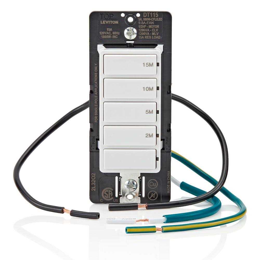 Leviton DT115-1LW Decora In-Wall 15 Minute Countdown Timer Switch, Single Pole, 15A, 1/2 HP, 9.8A Fan/Motor, White