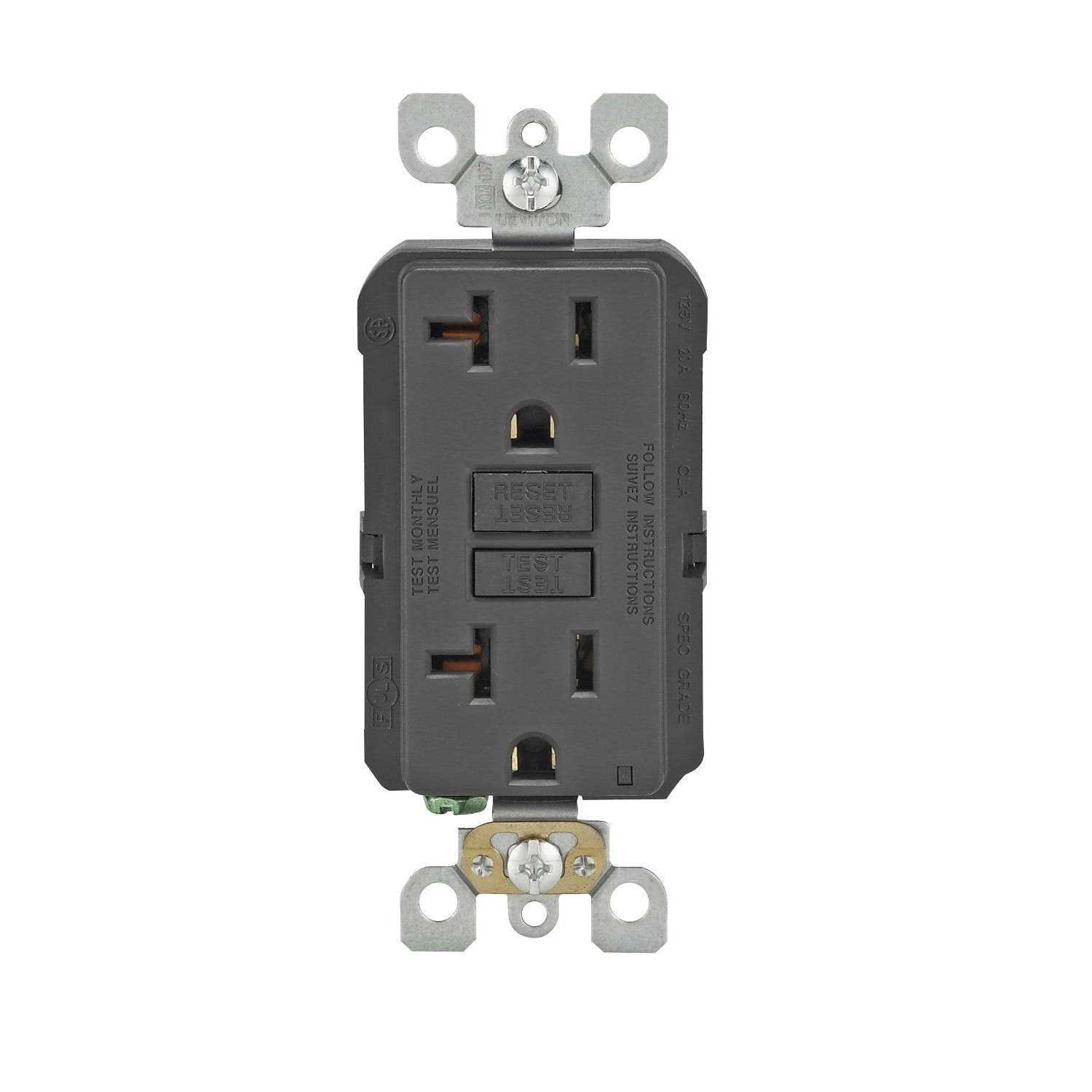 Standard Outlets by Leviton. Details:Peace of mind, all the time. The smartlockPro self-test gfci tests itself even if you forget. Designed to meet the latest ul standard for auto-monitoring (self-test) our complete line of self-test gfcis periodically conduct an automatic internal test to confirm that it can respond to a ground fault. With the slimmest profile on the market, the device allows for fast and easy installation, while Leviton’s patented reset lockout mechanism prevents reset of the gfci if it is not wired or operating correctly. The smartlockPro self-test gfci is the smart choice in ground fault circuit interrupter protection.