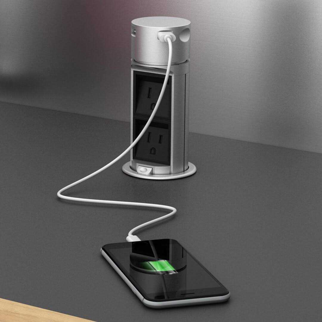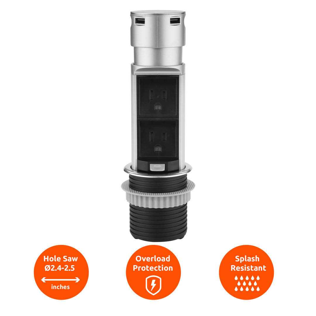 - Clean look: fully retractable with a stainless steel finish, the pop-up socket lets you add power in a sophisticated and unobtrusive way