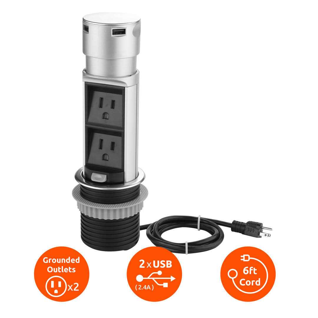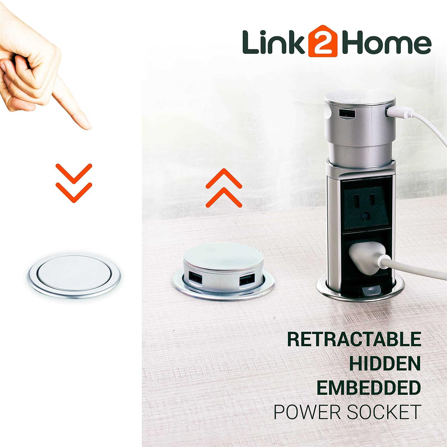 Link2Home Space Saver Pop Up-Outlet, 2 Power Outlets, 2 USB Ports 2.4