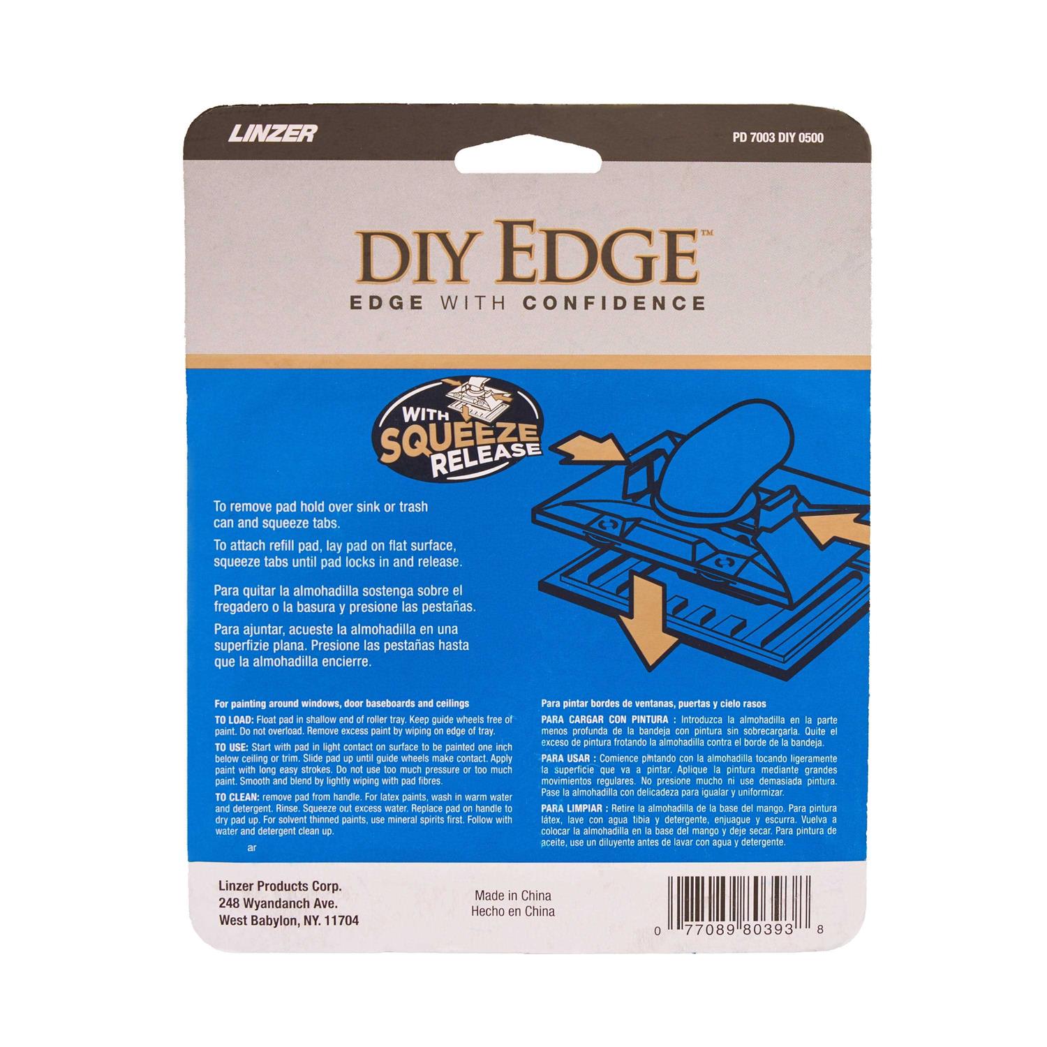 The DIY PRO EDGE 5 in. wheeled edging tool is an inexpensive way to cut a sharp edge while leaving a smooth professional quality finish. The edger is wheeled to keep the edger moving freely while cutting a sharp line. Features a squeeze release which makes changing the edger paint pads quicker and cleaner.
