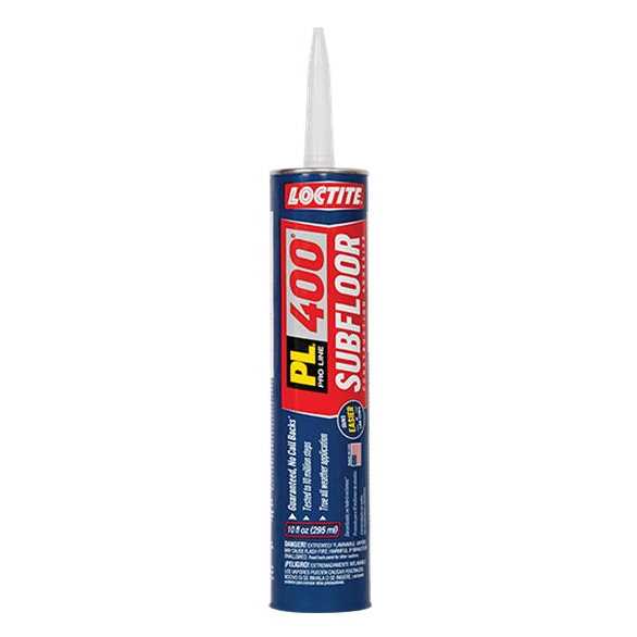 Loctite PL 400 Subfloor All Weather features superior bonding capabilities for heavy duty subfloor construction. Loctite PL 400 Subfloor All Weather is specifically formulated for extreme temperatures performance. It guns easily in temperatures as low as 18 DegreeF and as high as 120 DegreeF. PL 400 Subfloor All Weather bonds to dry, wet, or frozen lumber. The Low VOC formulation meets stringent State and Federal VOC regulations.