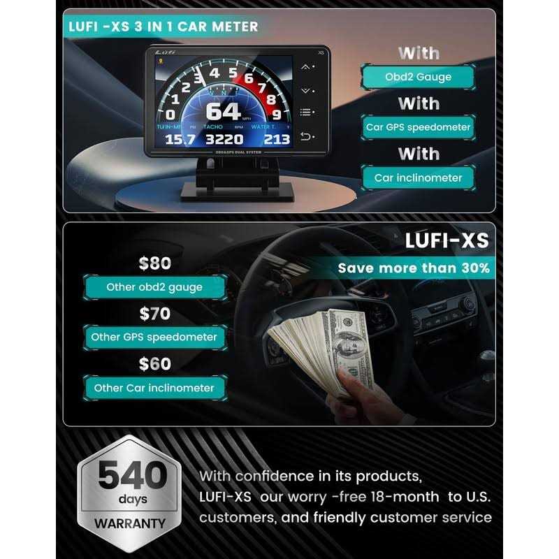 - The lufi XS is an OBD2 gauge/GPS Speedometer /car inclinometer 3 in1, versatile heads up display for cars。.