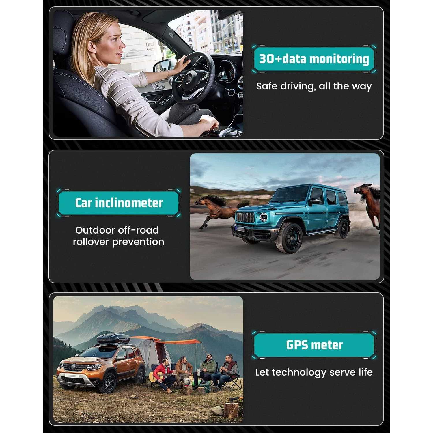 - 3. GPS speedometer compass function can display driving direction, Car inclinometer can prevent rollover when outdoor off-road.