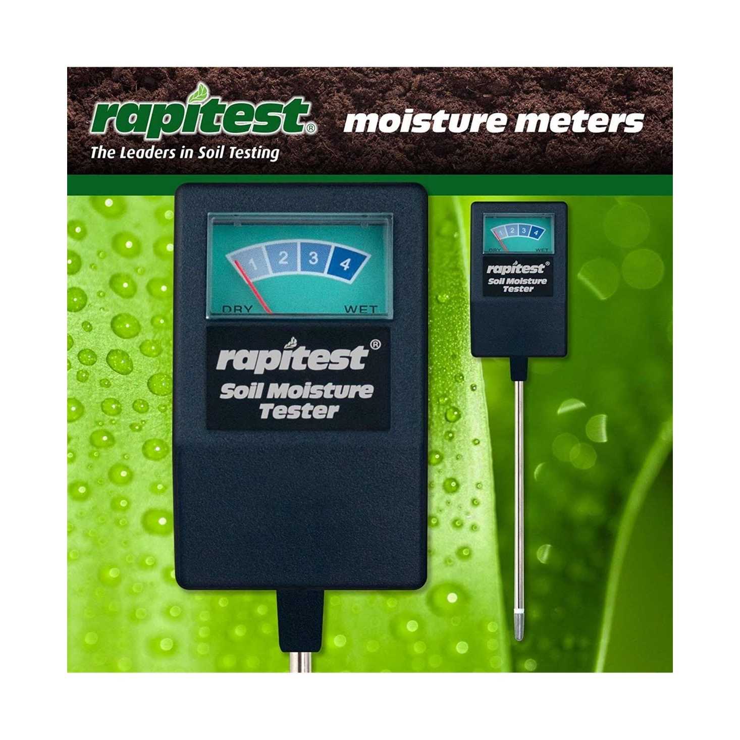Rapitest Moisture Tester Rapitest mini moisture meter instantly tells you when to water plants. Measures moisture, prevents over-watering. Ideal for plants grown in window boxes, hanging baskets and growbags. For indoor or outdoor use. Product Features Helps prevent over-watering. Indicates watering needs for over 100 plants. Specifically designed to be used only in soil. No batteries required. It is an ideal moisture tester for plants grown in window boxes and hanging baskets.